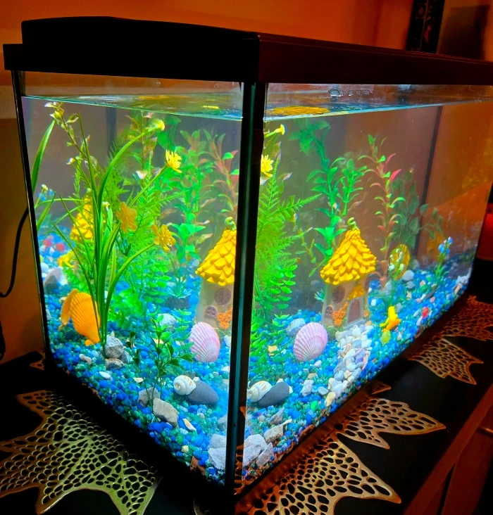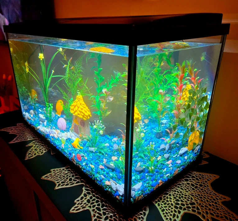 15Absolutely great as a gift! Very easy even for total beginners - this beautiful BRAND NEW fish tank comes as a full kit, completely set up and with everything you need to keep it running (it's ready for fish right away). You are getting: *10 gallon Aquarium, no scratches, no leaks and SUPER CLEAN *Undergravel Filter System (the safest filter for all fish and shrimp *Full Lid with Led Light *Premium Gravel with all the Good Bacteria already well established in (they keep the water parameters stable) *All the decorations pictured *Live plants *Fish Net *Fish Food, 2 Water Conditioners, and Care Instructions. It comes exactly as pictured, fully set up and very easy to take home. Perfect home for a lot of fish. Price is less than 1/3rd of store price for all the beautiful items included here - so no bargaining please!