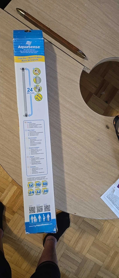 Selling a brand new AquaSense grab bar, still in its original packaging! This 24-inch (60.9 cm) grab bar provides added safety and support in the bathroom. Easy to install and perfect for anyone needing a little extra help.