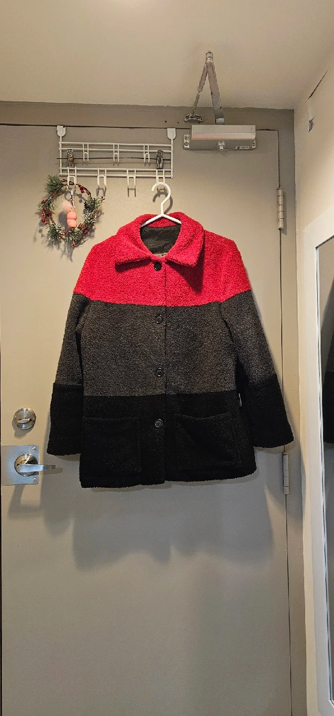 1000+Selling an AR Weekend jacket with a unique colour block design in red, grey, and black! It's in great condition and ready for a new home