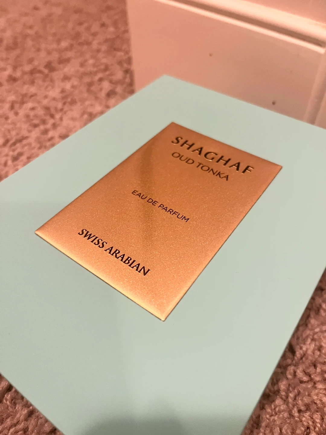 This is the Swiss Arabian Shaghaf Oud Tonka Eau de Parfum. It's a delightful fragrance with a unique scent profile. The bottle comes presented in its original box.