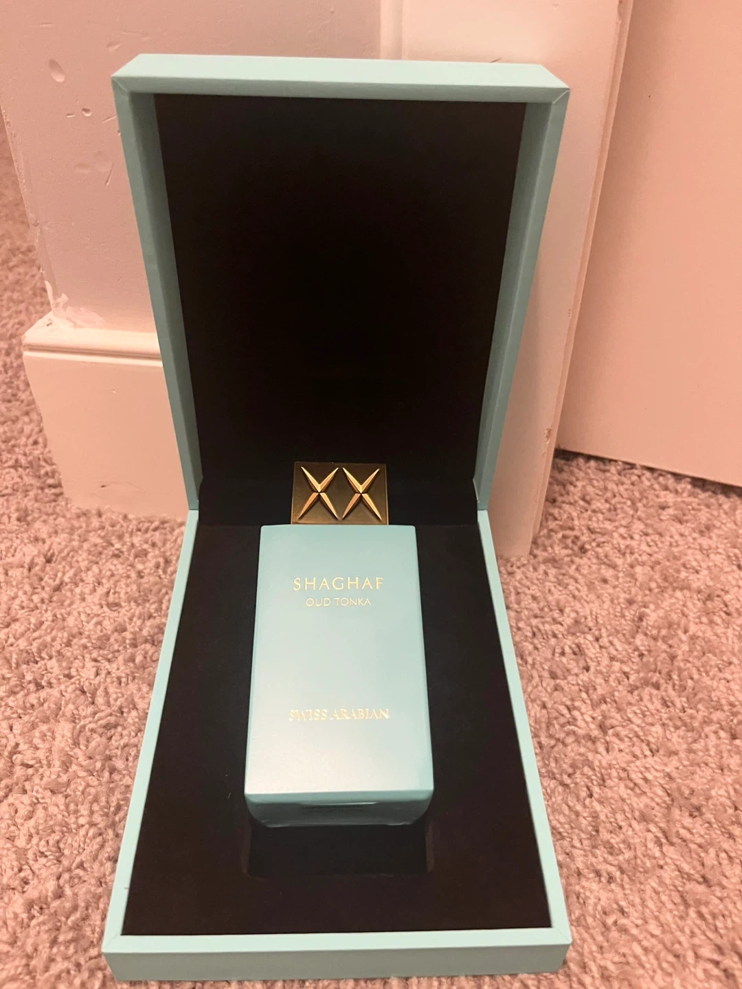This is the Swiss Arabian Shaghaf Oud Tonka Eau de Parfum. It's a delightful fragrance with a unique scent profile. The bottle comes presented in its original box.