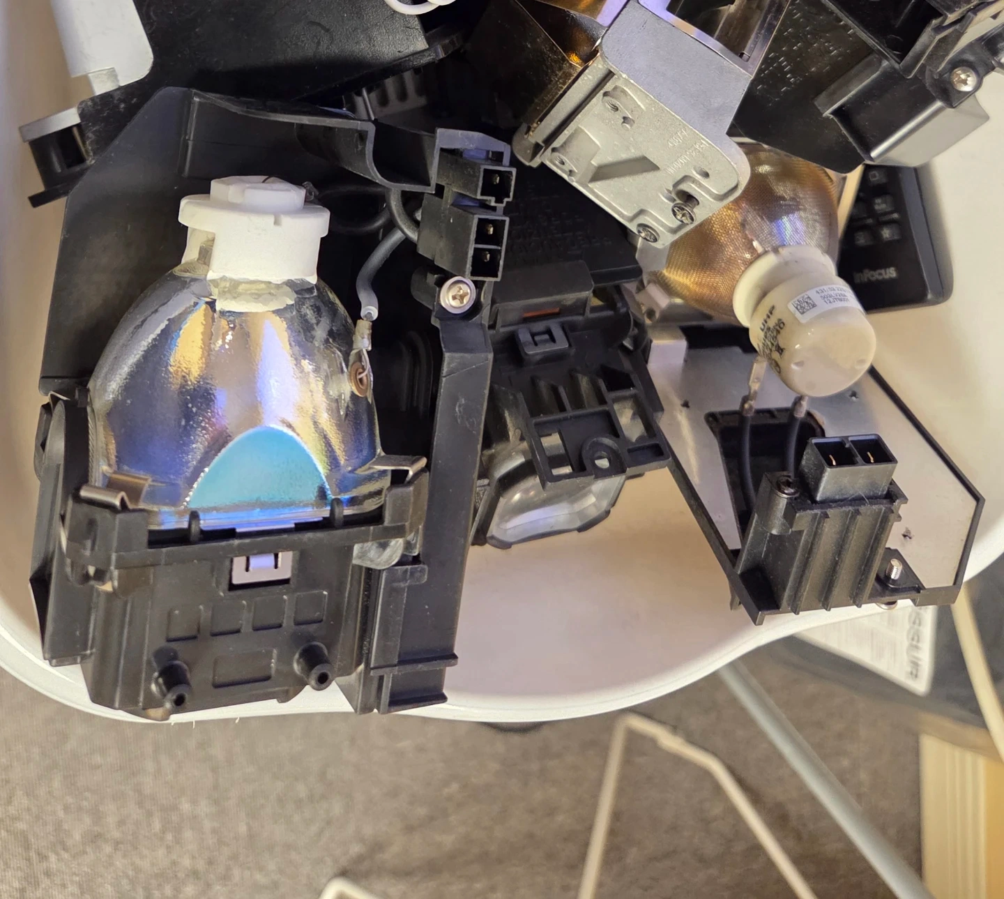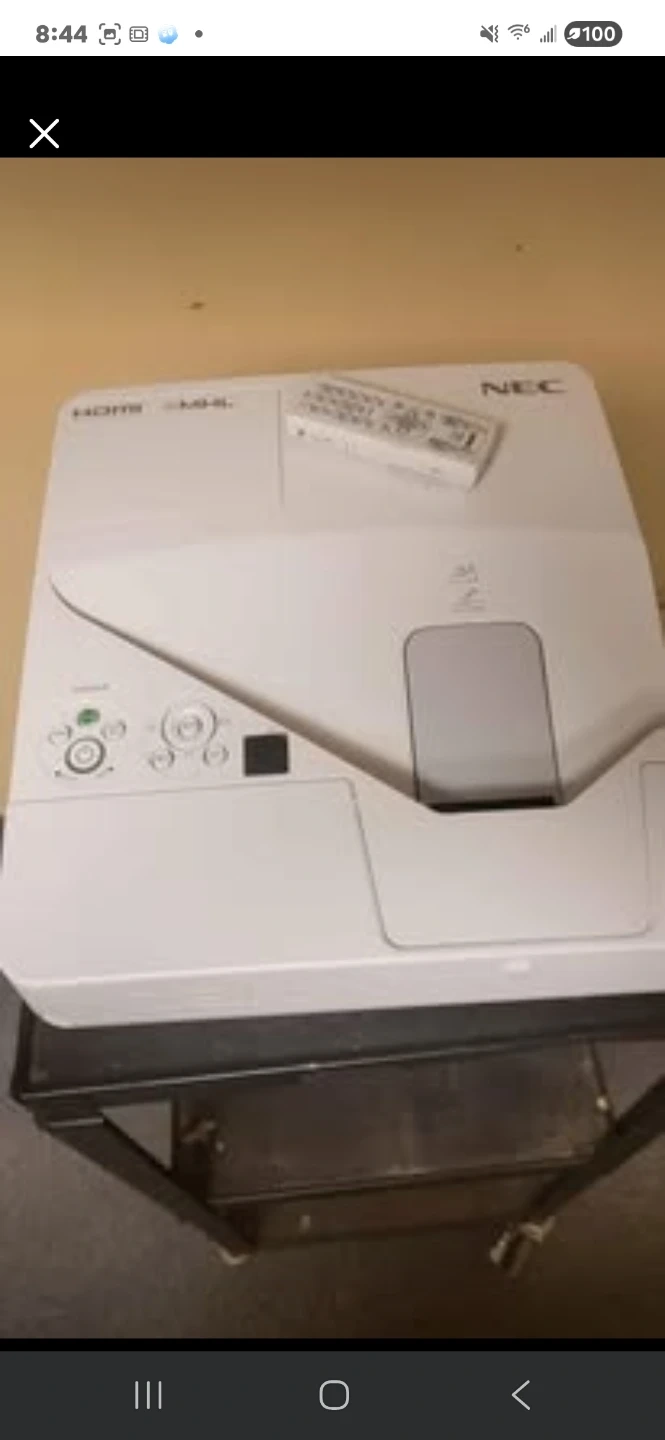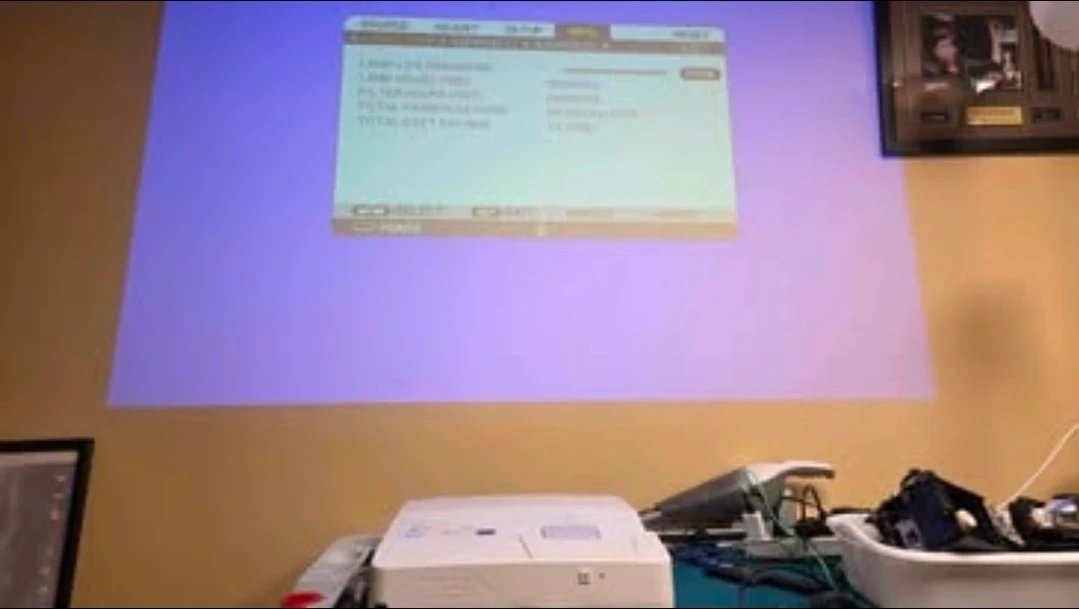 It features a super short throw lens, allowing for large images to be projected from a short distance. New bulb installed! Remote control and power cord are included. It's in like-new condition.