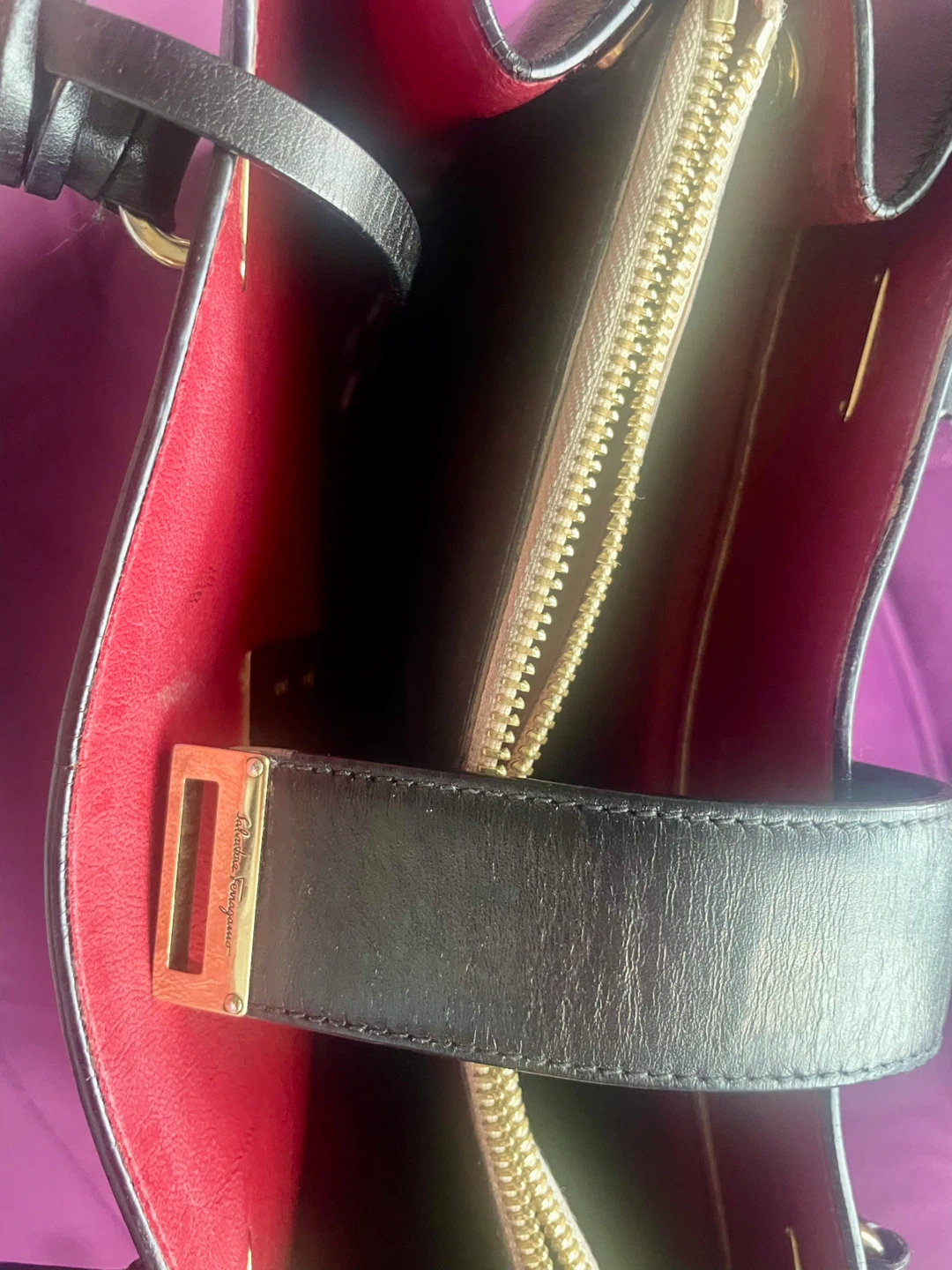Selling a beautiful Salvatore Ferragamo black leather tote bag! It's in great condition and perfect for everyday use or special occasions. The bag features a classic design with gold-tone hardware and a spacious interior. This stylish tote is a timeless addition to any wardrobe!