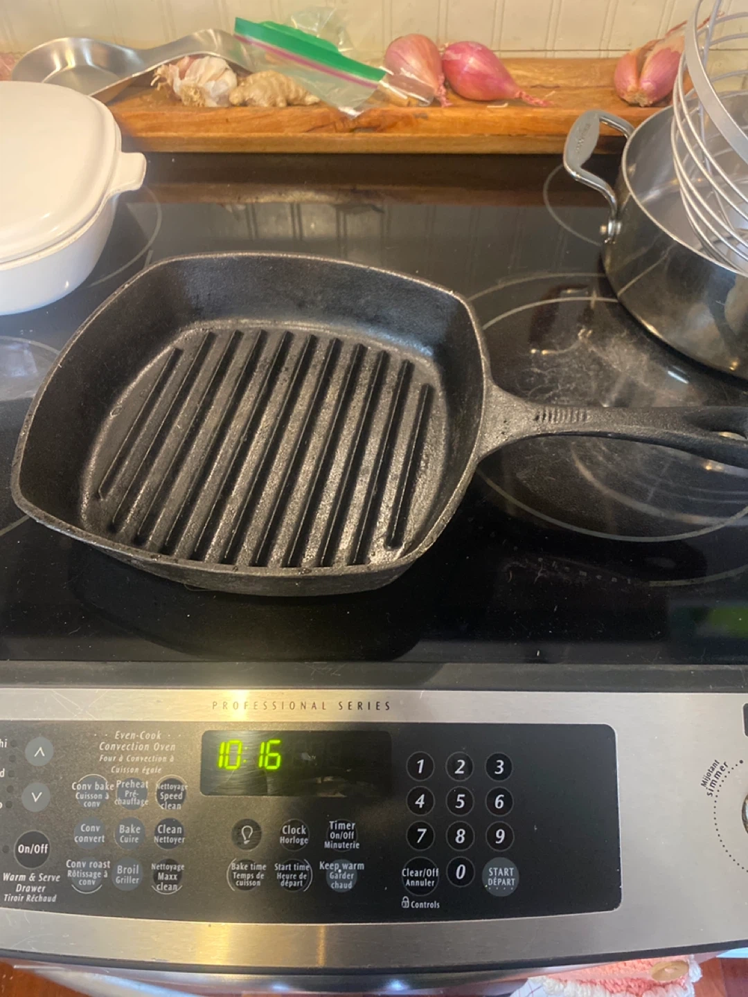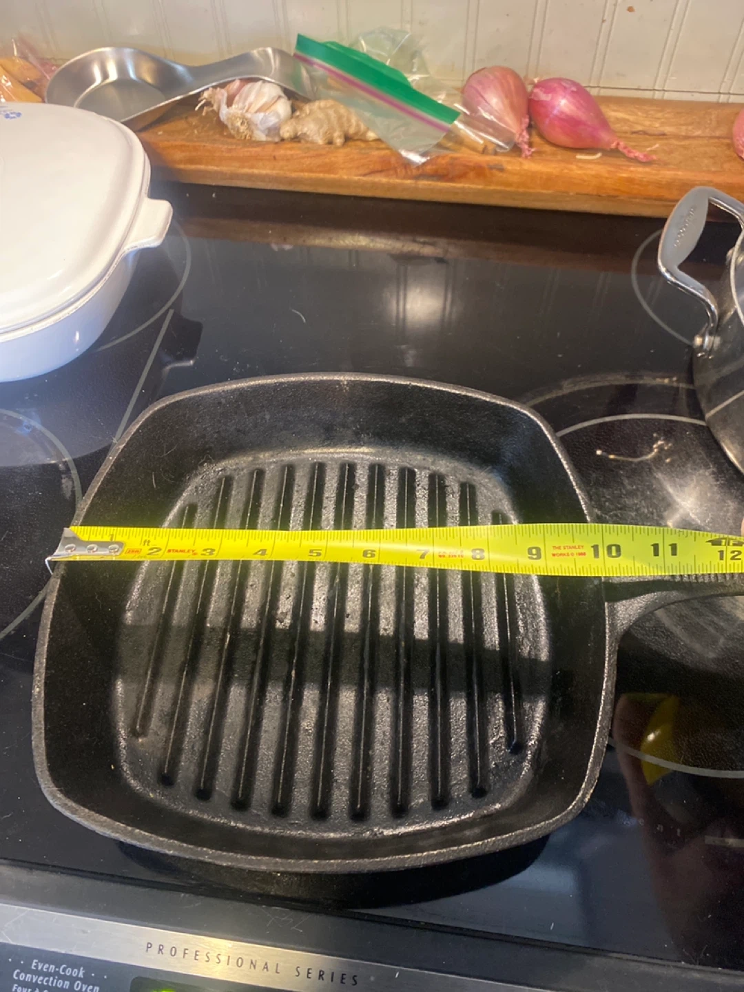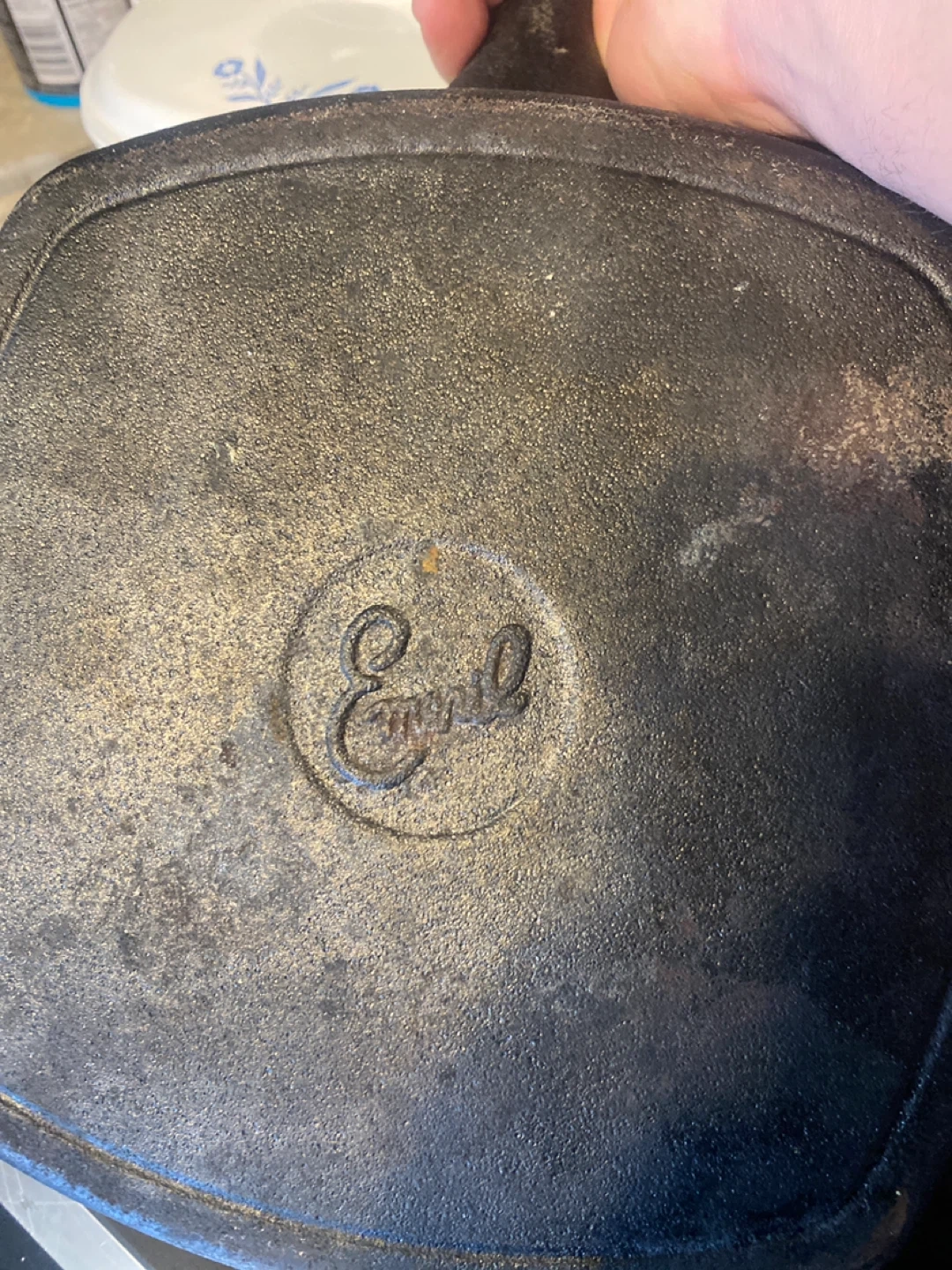 Selling a used Emeril cast iron grill pan! It's in good condition and ready for your grilling needs. Measures approximately 10 inches across. Needs a good home!