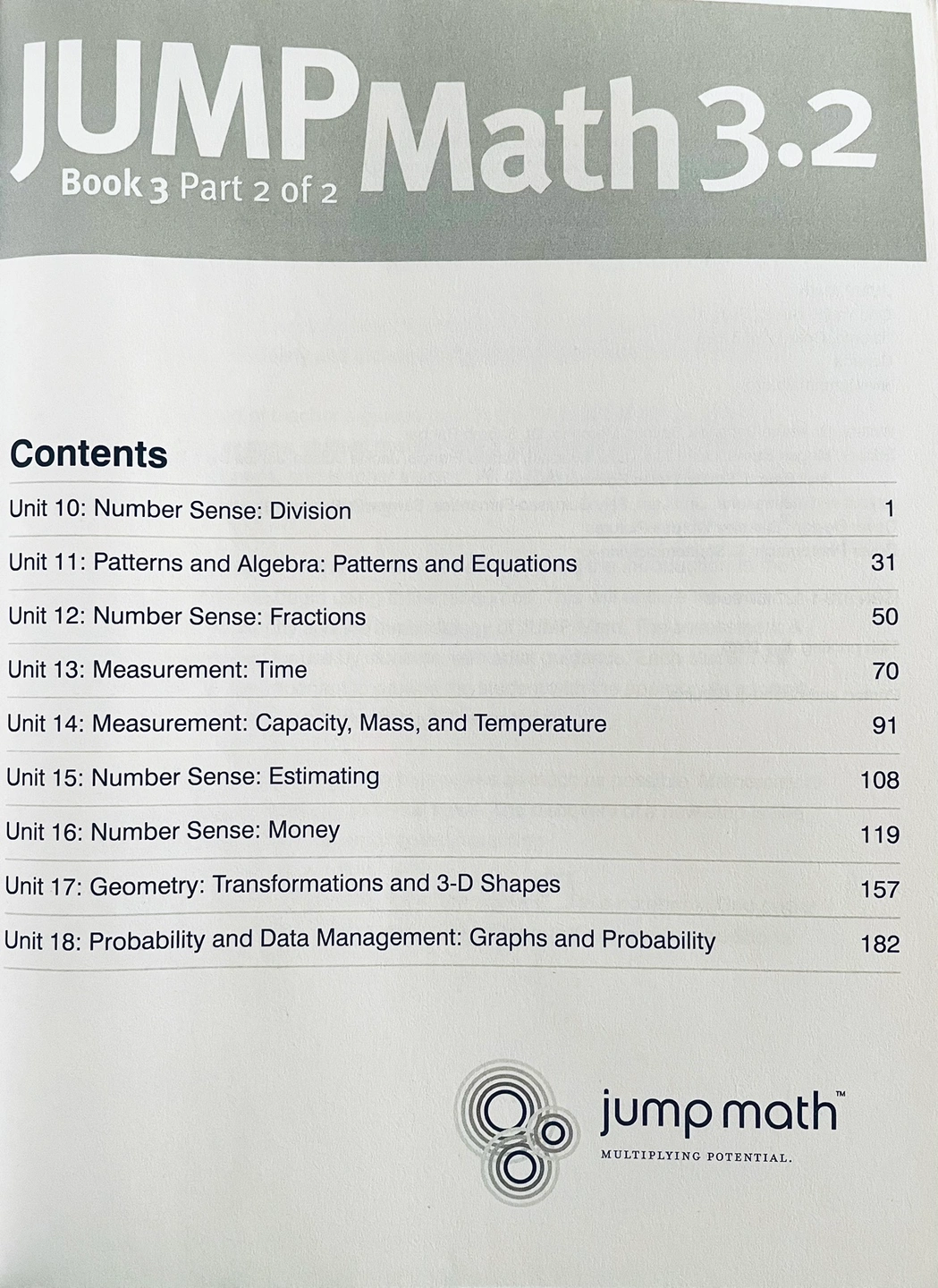 JUMP Math 3.2 is an excellent and comprehensive Gr. 3 student Assessment and Practice book for students to catch up on the summer on concepts missed, or for student practise to prepare for the next grade, or as a math supplement to the classroom math program. Created by Canadian John Mighton; his work in fostering numeracy and building children's self-confidence through success in math has been widely recognized. It goes step by step through the concepts with examples so students don’t get frustrated. It covers: