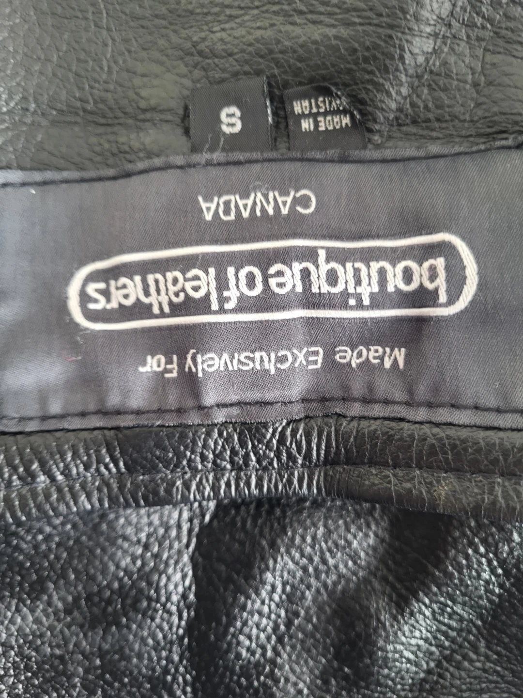 Black leather chaps made by Boutique of Leathers. These chaps are made exclusively for Canada and are size small. They feature adjustable buckles and snap closures for a secure fit.