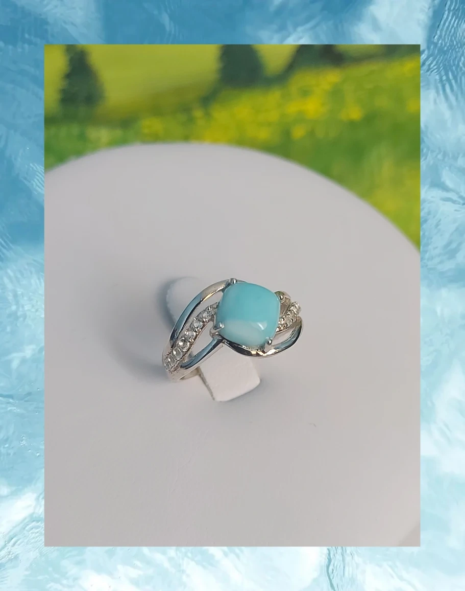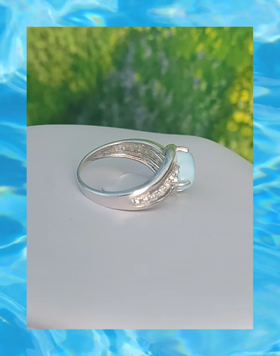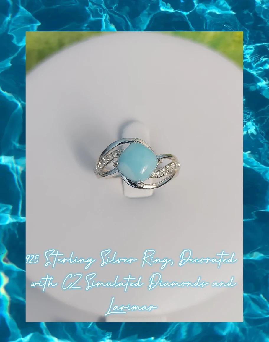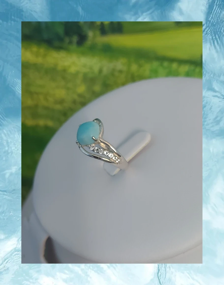 Larimar Ring With CZ Simulated Diamonds, 925 SS