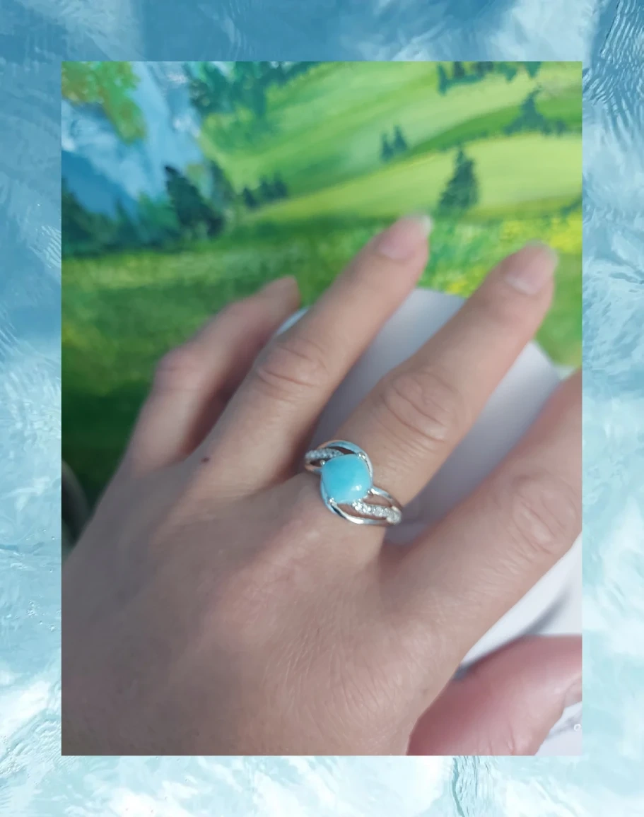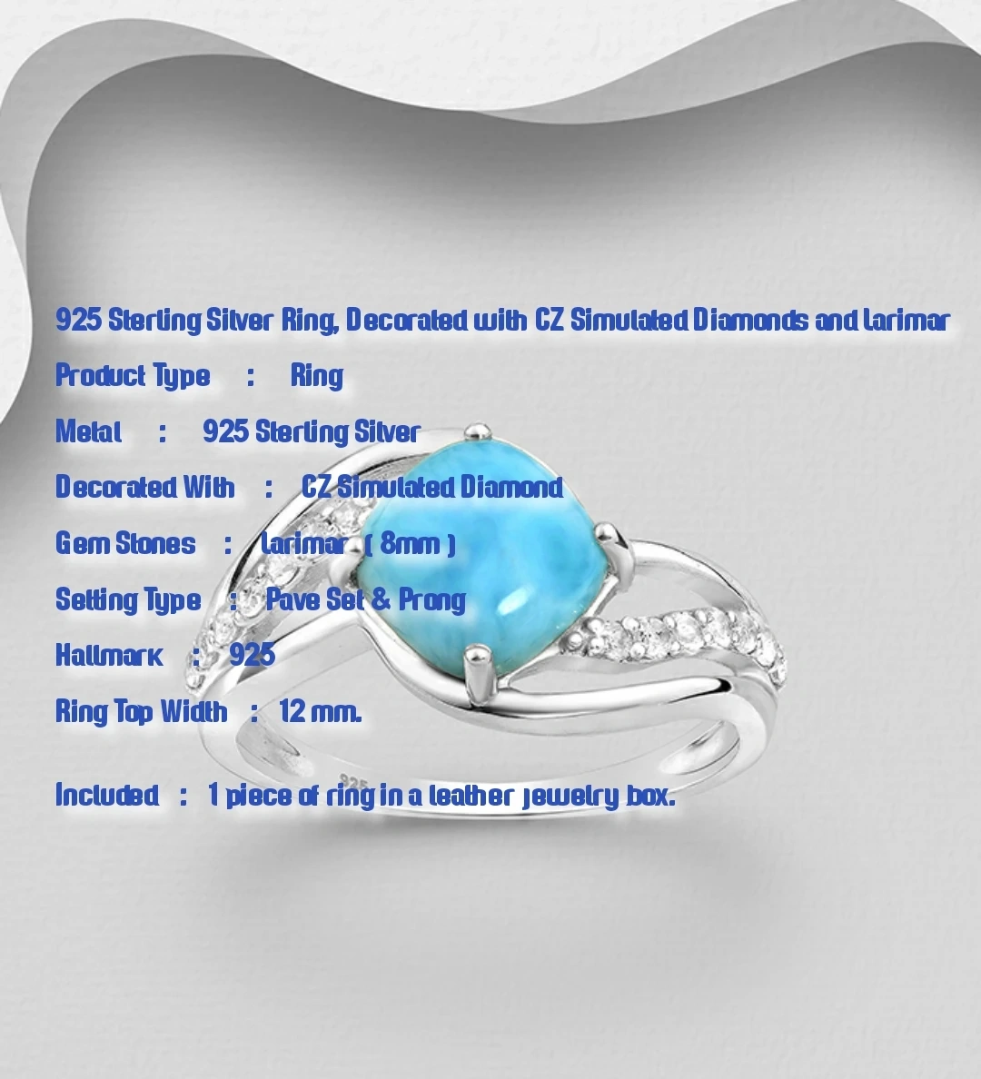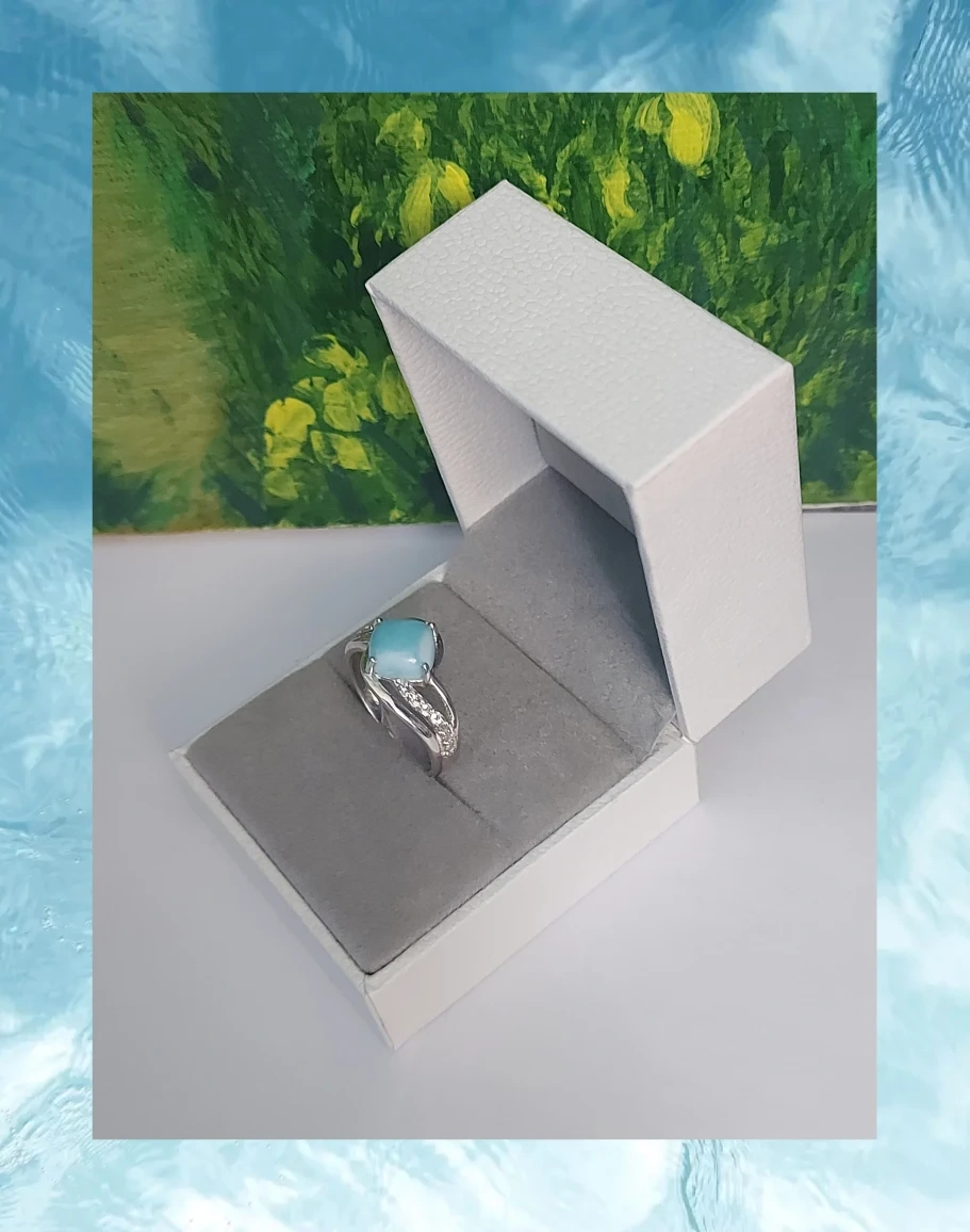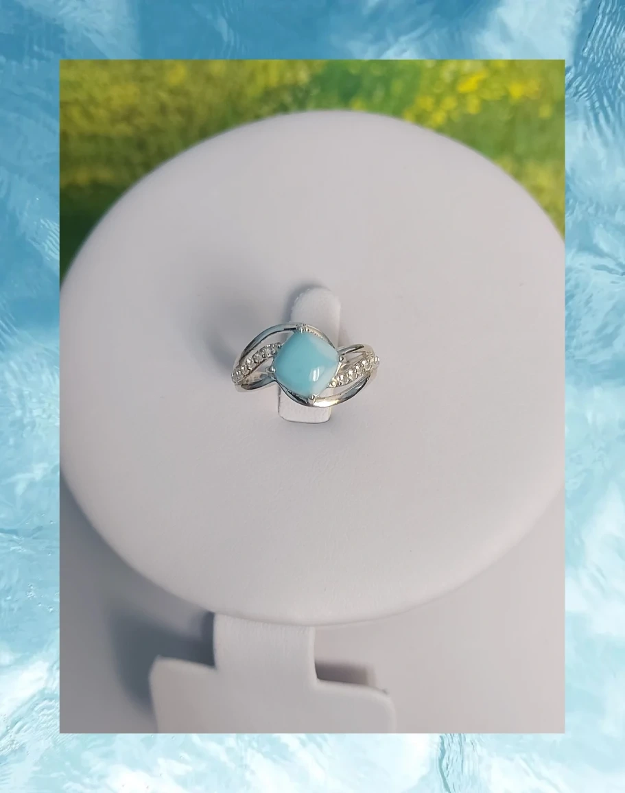 Larimar Ring With CZ Simulated Diamonds, 925 SS