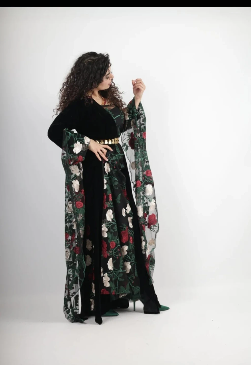 Elegant Abaya with Floral or Sequin Design kurdish dress