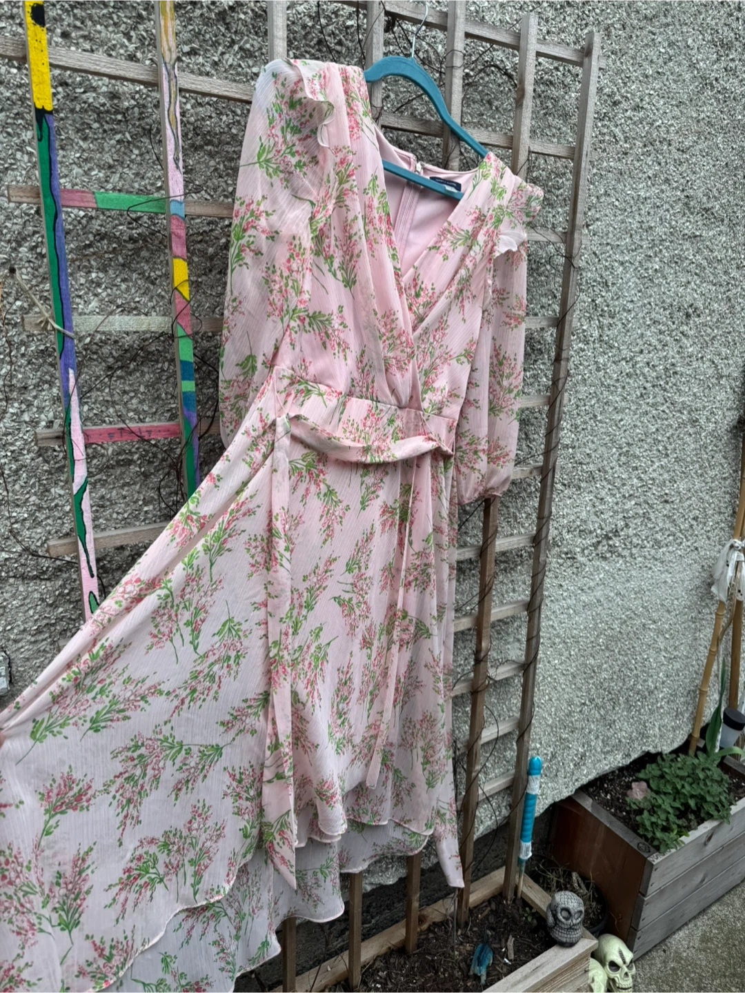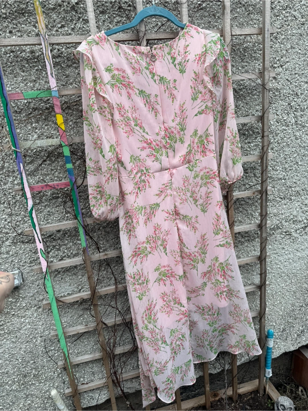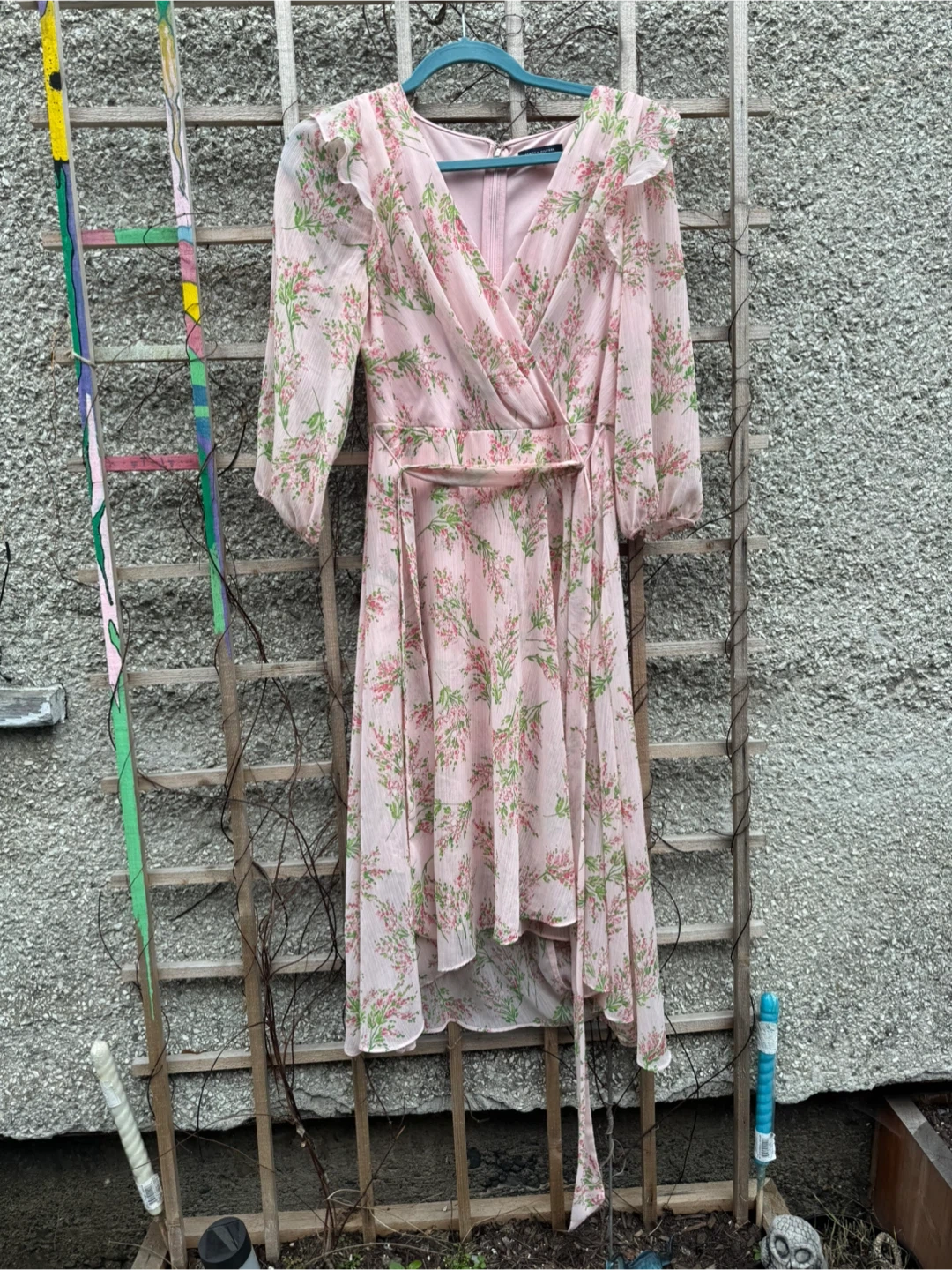 Tommy Hilfiger pink floral print midi dress with a wrap front. It's a size 6 and made in Vietnam. This dress features ruffled sleeves and a tie waist. Try one welcome.