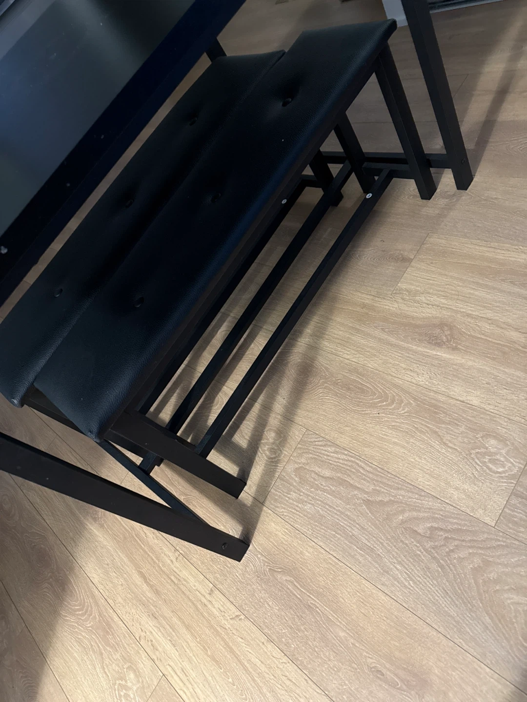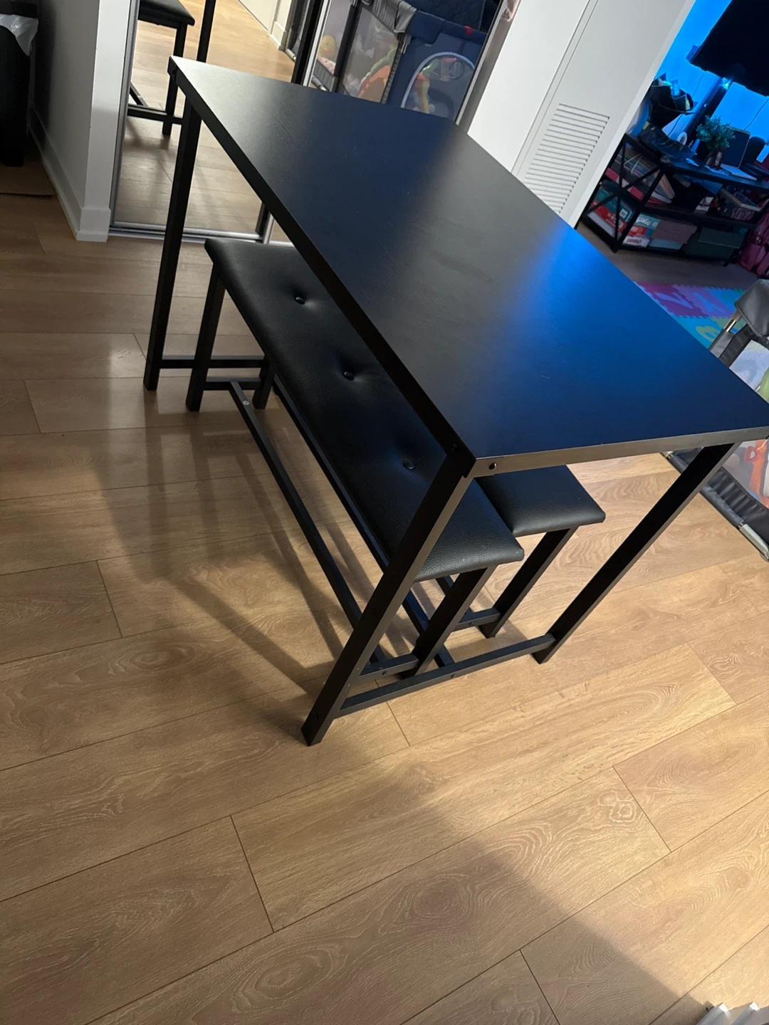 Selling a dining table set with two benches! The set is black and would look great in any dining room or kitchen. The benches are padded for extra comfort, making meal times more enjoyable! (Price negotiable☺️)