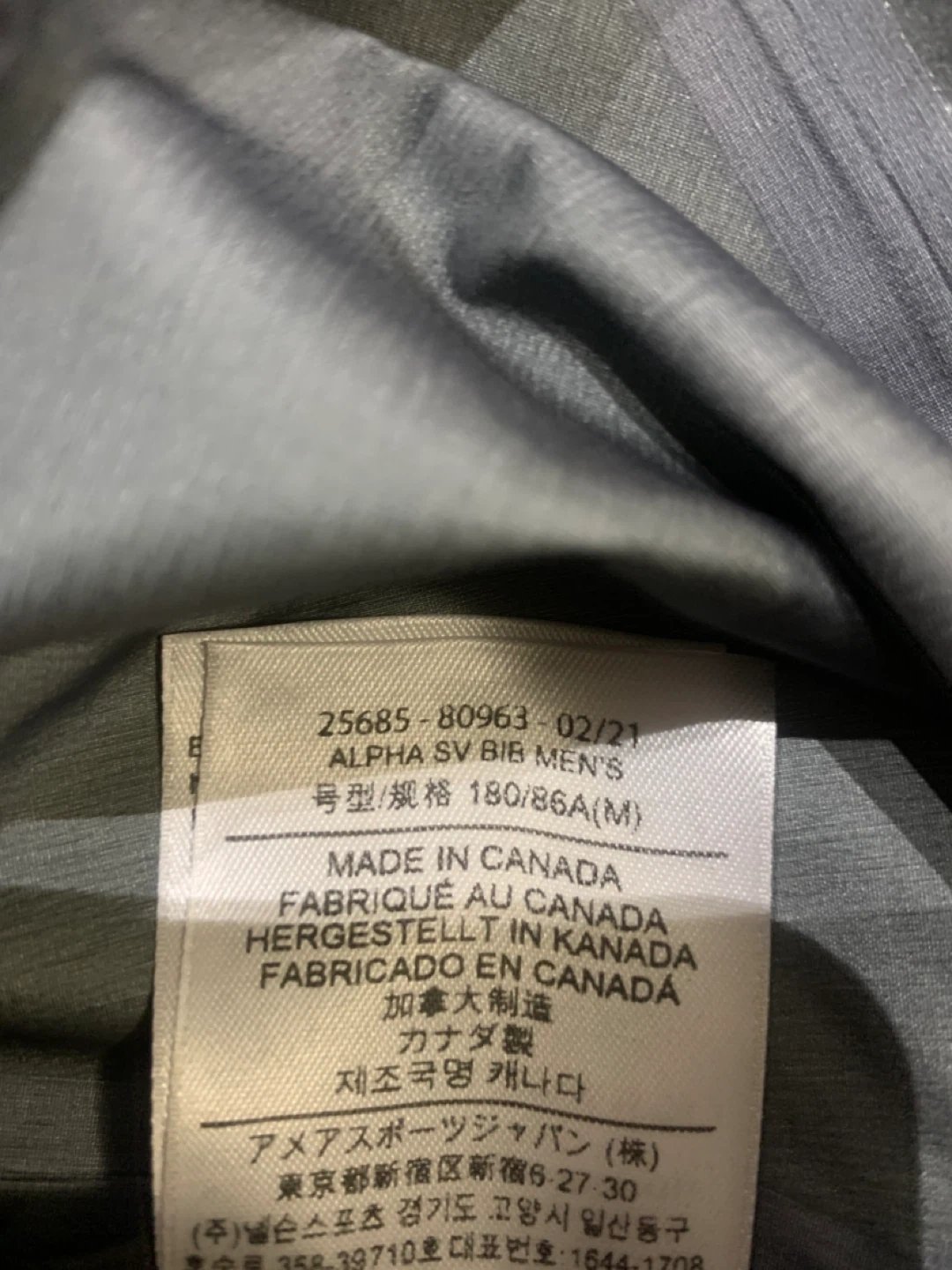 10Selling a pair of Arc'teryx Alpha SV Bib pants for men in size M. These are made in Canada and are in great condition. Perfect for skiing, ski touring, snowboarding or ice climbing