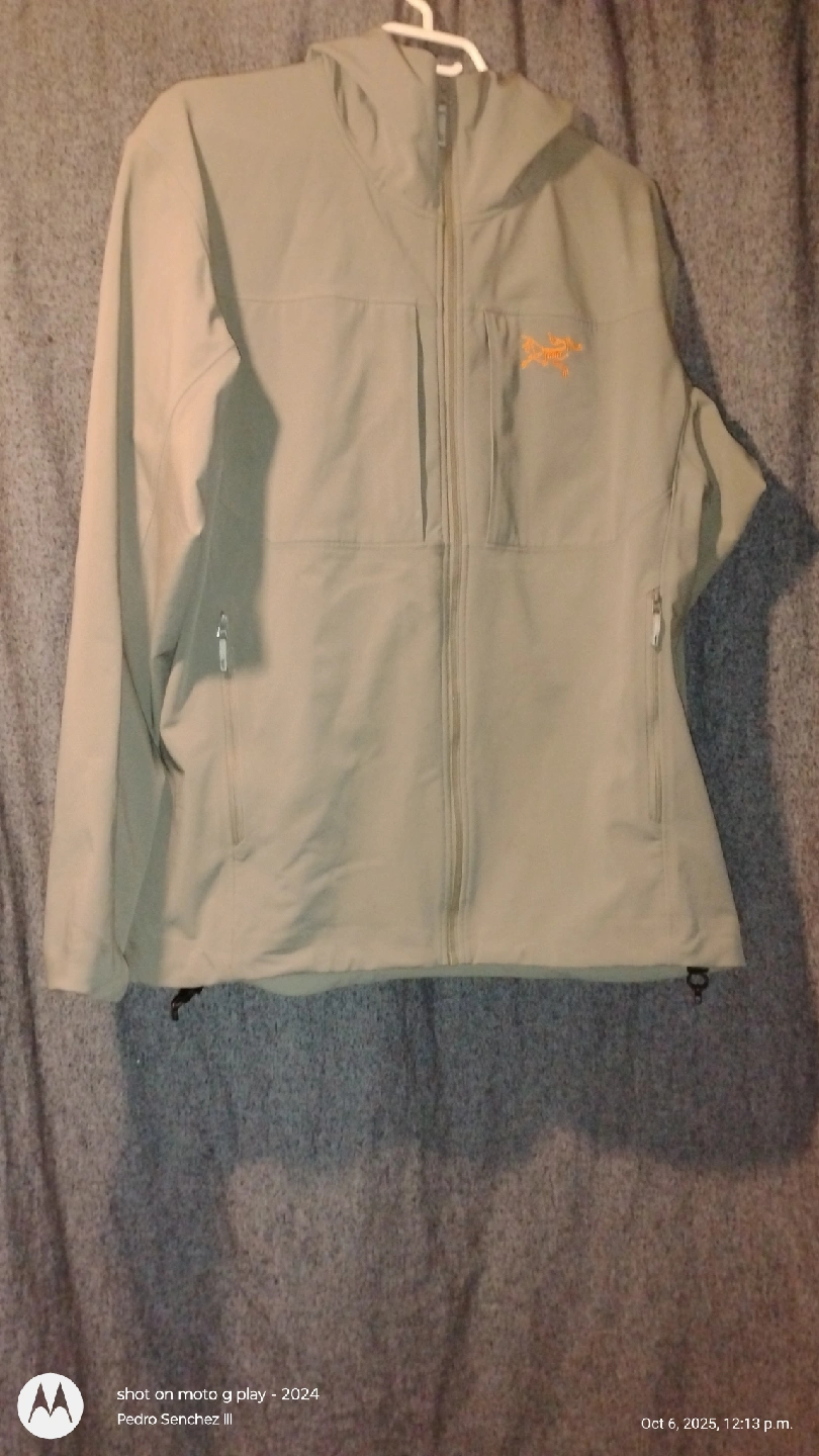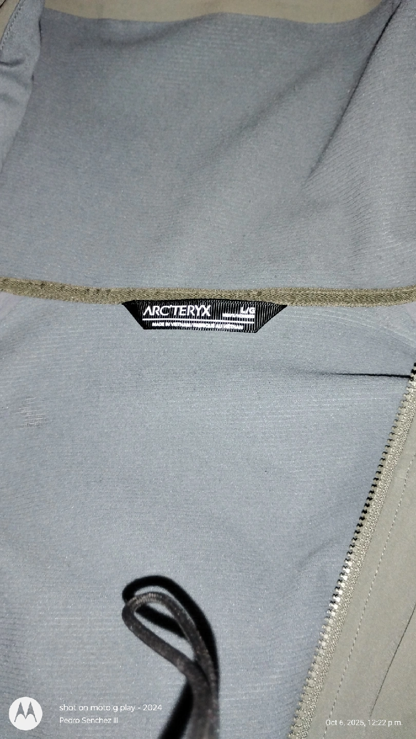 Arc'teryx jacket in a light green colour. It's a size large. Perfect for outdoor activities or everyday wear!