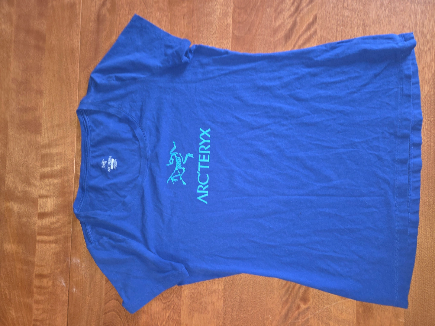 10Selling a blue Arc'teryx t-shirt in size small. It's in great condition and ready for a new home! The iconic Arc'teryx logo is prominently displayed on the front. Perfect for everyday wear or outdoor activities