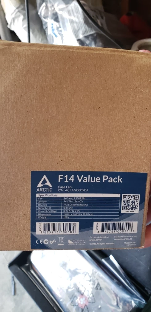 Selling a brand new Arctic F14 Value Pack case fan! Key features: - 140 mm, 1350 RPM - Airflow: 74 CFM/126 m³/h - Fluid Dynamic Bearing - Noise Level: 0.3 Sone - Dimensions: 140(L) x 140(W) x 27(H) mm - Weight: 180 g