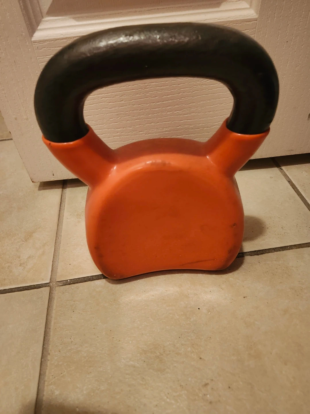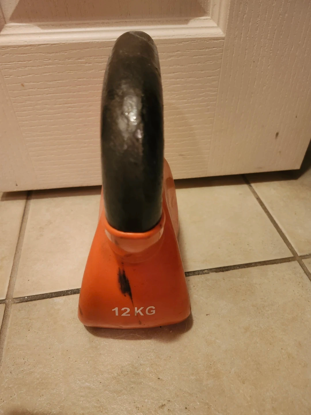 Selling an orange kettlebell that weighs 12 KG. It's perfect for at-home workouts and strength training. It has some signs of use, but is in good condition overall!