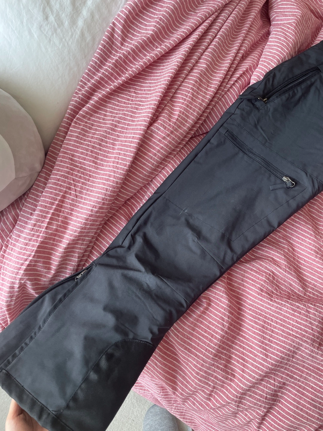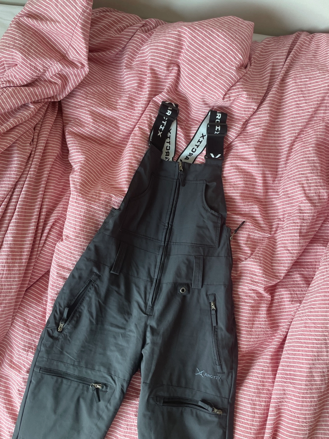 I’m 5’3” and it’s the perfect length for me, especially with snowboard boots on. Straps are adjustable so you can make the bib a bit shorter or longer. Has a snug fit that slightly flares at the end. Worn for 2 seasons but wanted something baggier, so I’m selling this one. No damages or scuffs.