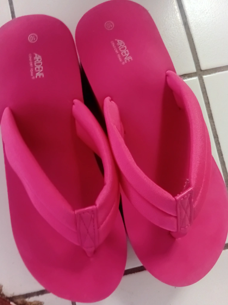 Selling a pair of Ardene flip flops in a vibrant pink! They're in great condition and are a size 10. Perfect for summer or wearing around the house