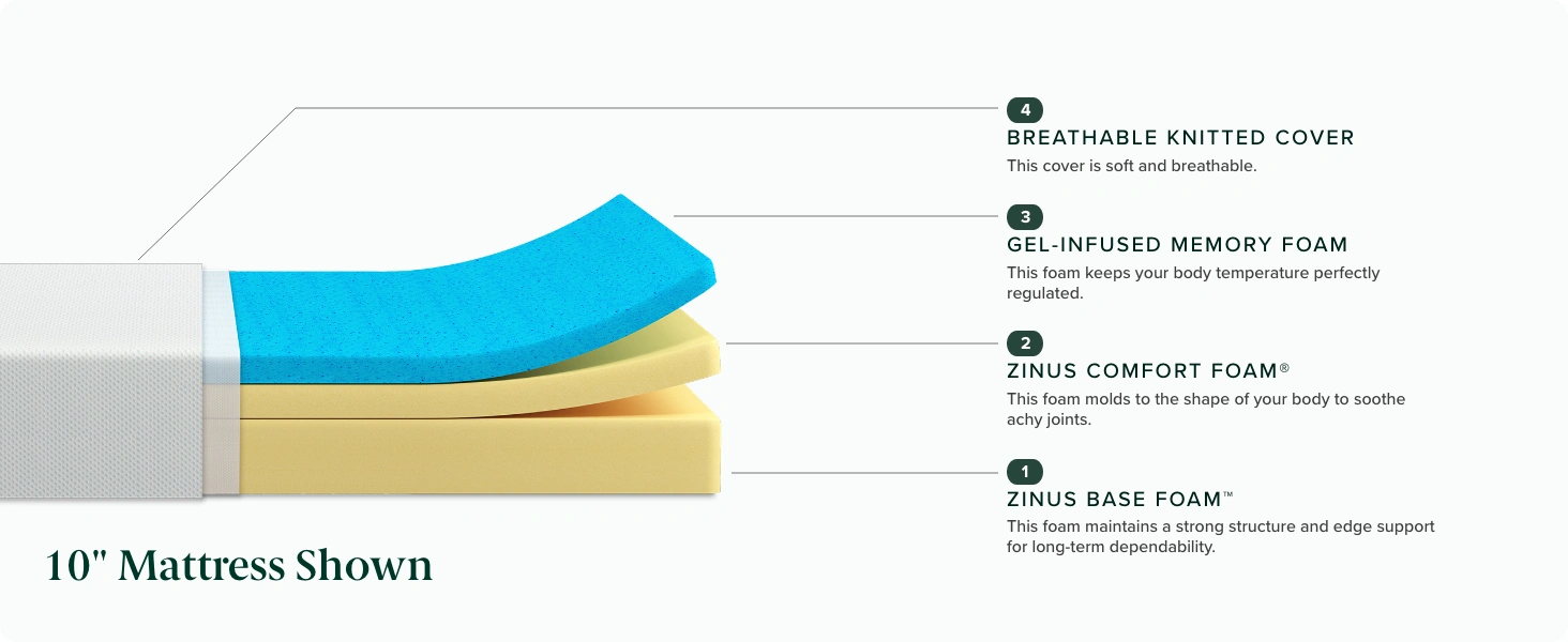 ZINUS 10 Inch Queen Size Memory Foam Mattress