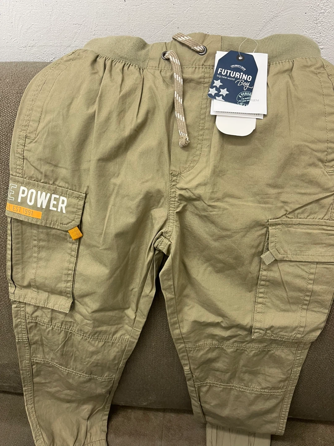 A collection of boys’ tops and bottoms. Includes graphic t-shirts and casual pants. Various colours and styles are present.
