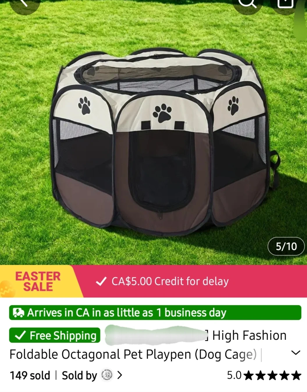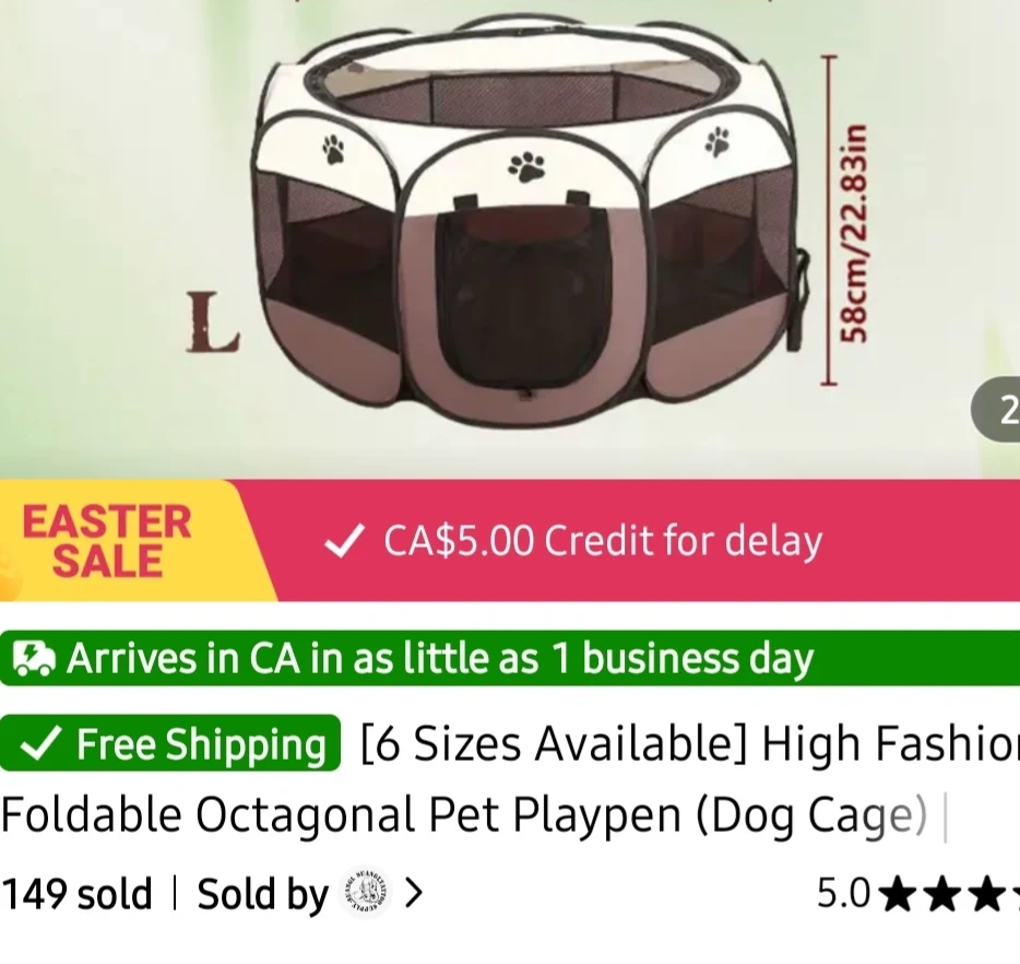 This is a foldable octagonal pet playpen, perfect for cats or dogs or other small pets. It's designed for convenience and portability. Comes in a neutral beige and brown colour with paw print accents. Dimensions are 58cm/22.83in.