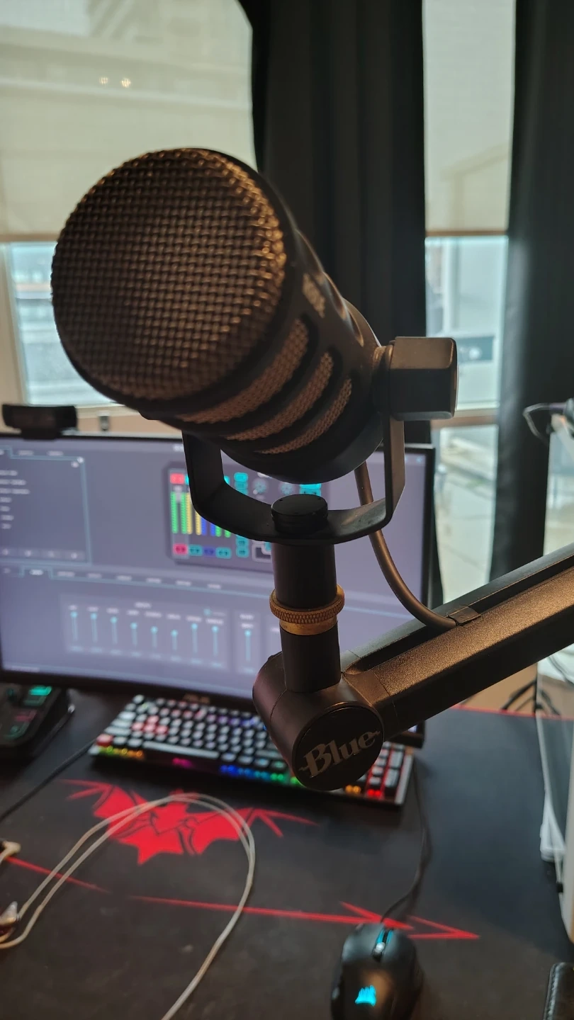 This Rode PodMic microphone comes with a Blue Compass boom arm. It's great for podcasts or streaming setups, as well as working from home.