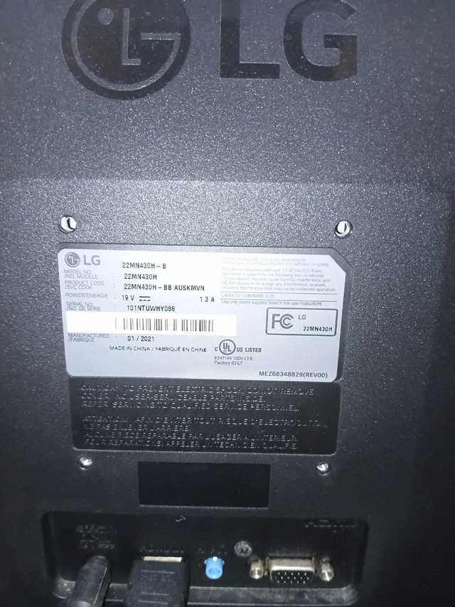 This is an LG 22MN430H-B 21.5" Full HD IPS monitor that delivers crisp visuals with Radeon FreeSync technology, making it perfect for both work and gaming. This monitor is in good condition and ready to enhance your viewing experience. Specs: Screen Size: 21.5 inches, Resolution: Full HD (1920 x 1080), Panel Type: IPS, Features: Radeon FreeSync. Get ready to enjoy smooth and vibrant visuals.
