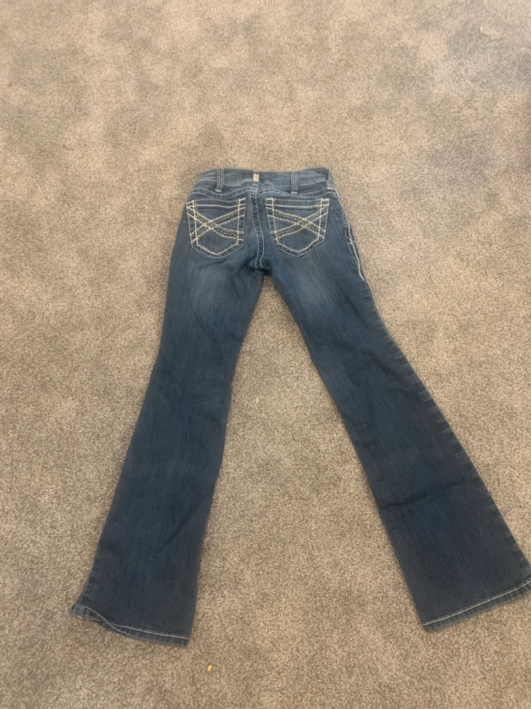 Selling a pair of Ariat bootcut jeans in great condition! They have a stylish design on the back pockets. Perfect for everyday wear or a night out