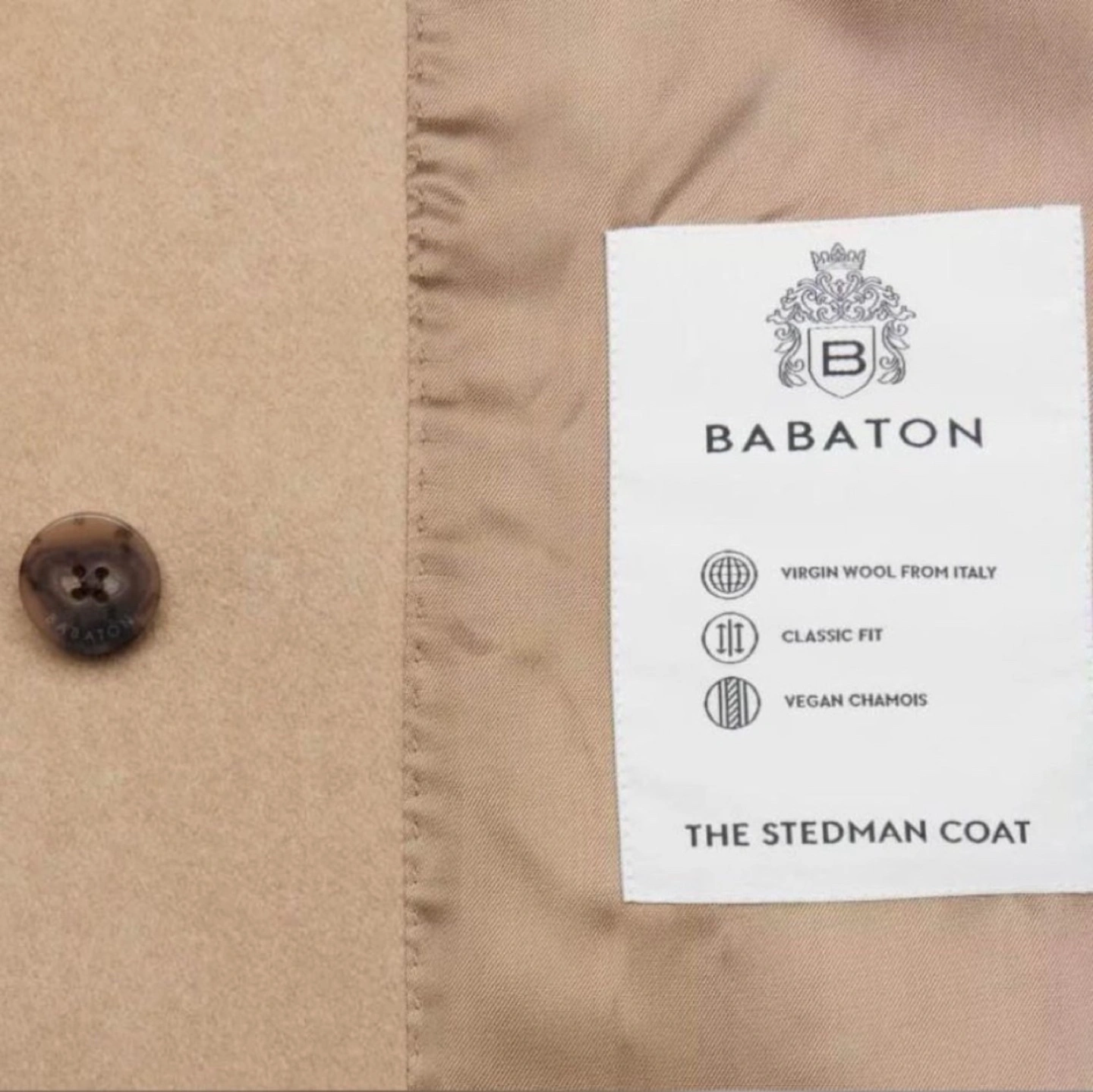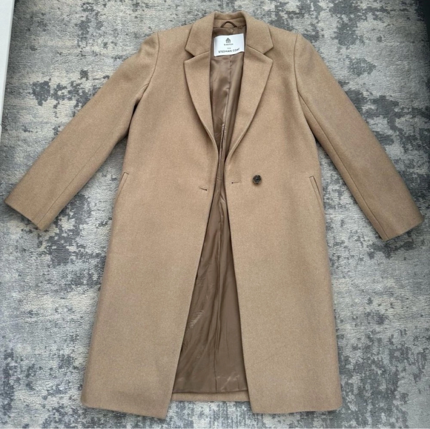 22In brand new condition, with deattached tags 10/10. Retails for $389 CAD after tax. SELLING FOR $250 OBO Meticulously crafted to deliver warmth to -10°C / 14°F, this is a fully lined single-breasted coat with a notched lapel and a vegan chamois interlining for added warmth and wind protection. Recently redesigned for an even better look, fit and feel, it's expertly tailored with Wool Melton — soft 100% virgin wool melton with a luxuriously smooth, felt-like feel. This fabric is sourced from Lane Di Prato, one of Italy’s premier mills. This colour is also LIMITED EDITION, the perfect begie toned coat!