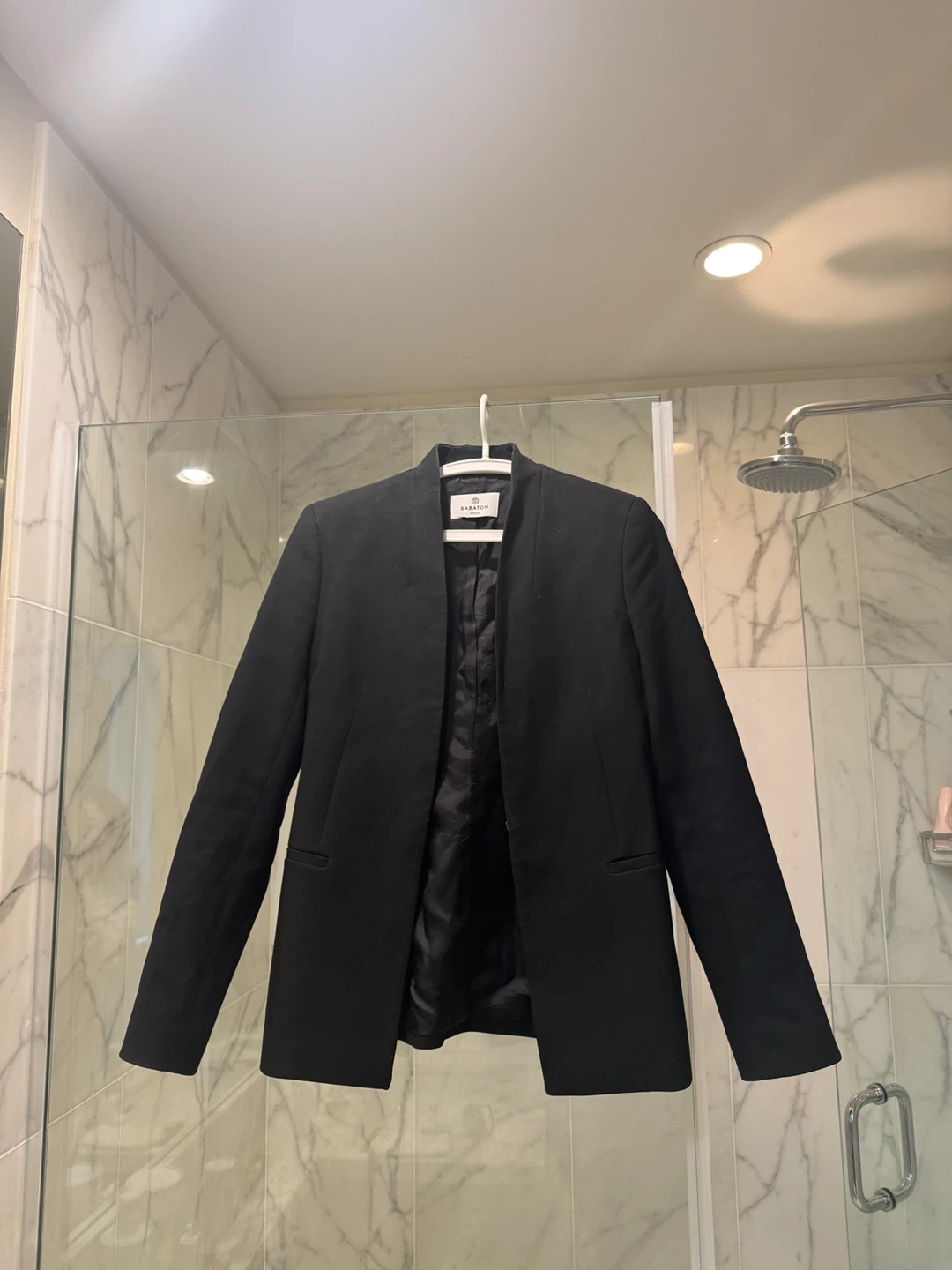 Selling a gently used black blazer from Aritzia's Babaton line! It's a softly structured, open-front, slim-fit blazer. Size 00