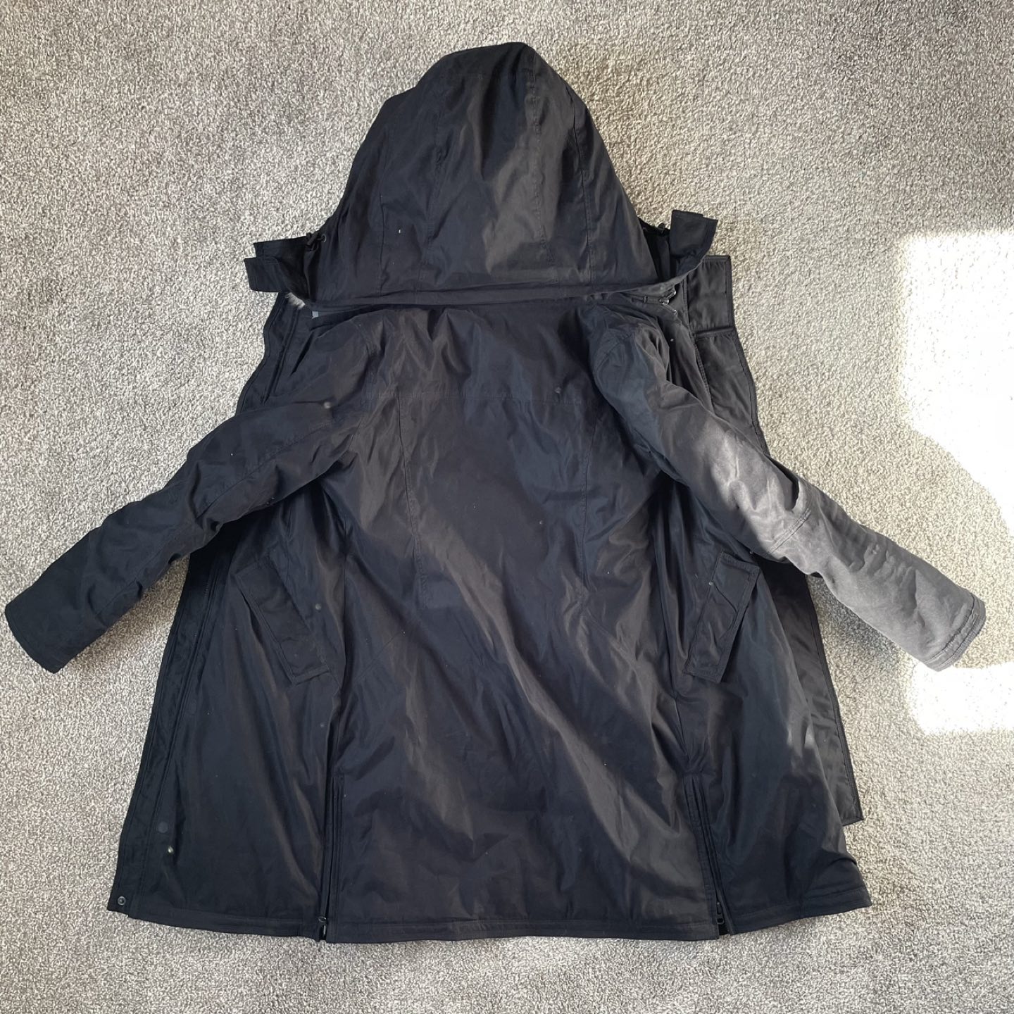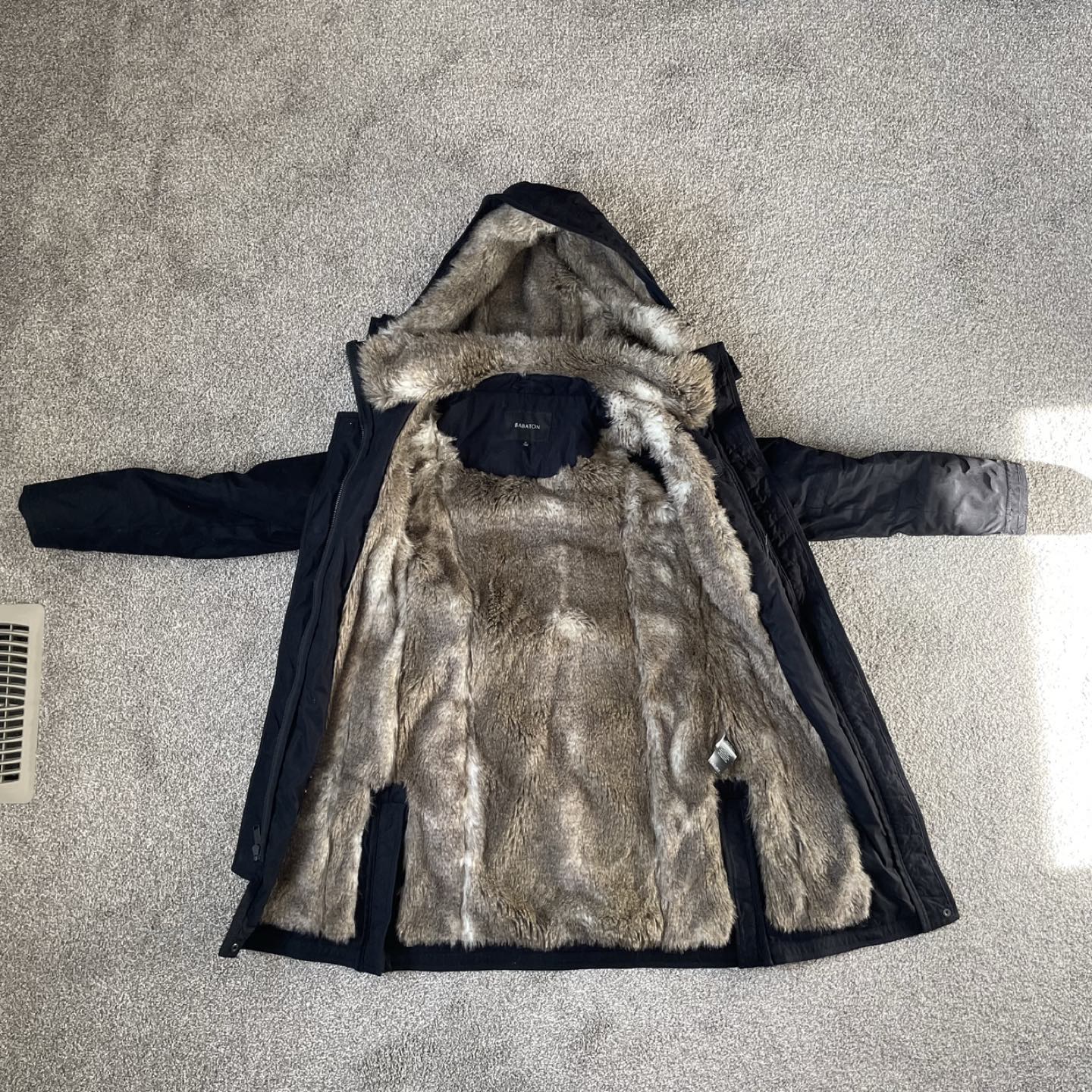 23Engineered to deliver warmth to -30°C / -22°F This is a minimalist parka with a removable hood, down-filled sleeves and merino wool cuffs for added coziness. The body is lined with plush Real Faux Fur — luxe vegan fur with an authentic look and feel. This version is made with a sueded twill fabric that's waterproof and windproof. Mid-length style Parka After my wife's pregnancy, the jacket doesn't fit. That's why I'm looking to sell. Thanks for looking!