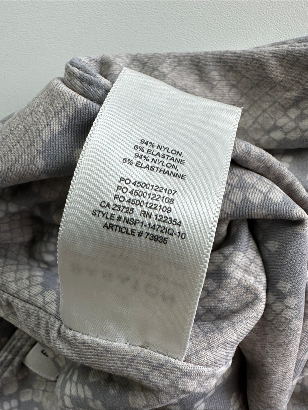 - Very good condition - Stretch material This is a Babaton bodysuit with a snakeskin print. It's made of 94% nylon and 6% elastane. Machine wash cold with like colours, only non-chlorine bleach when needed, tumble dry low, cool iron only if needed, do not dry clean