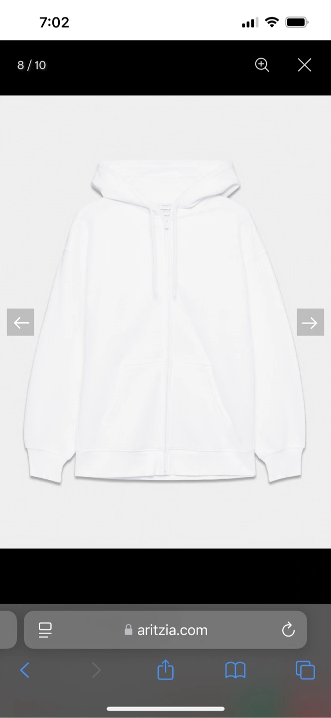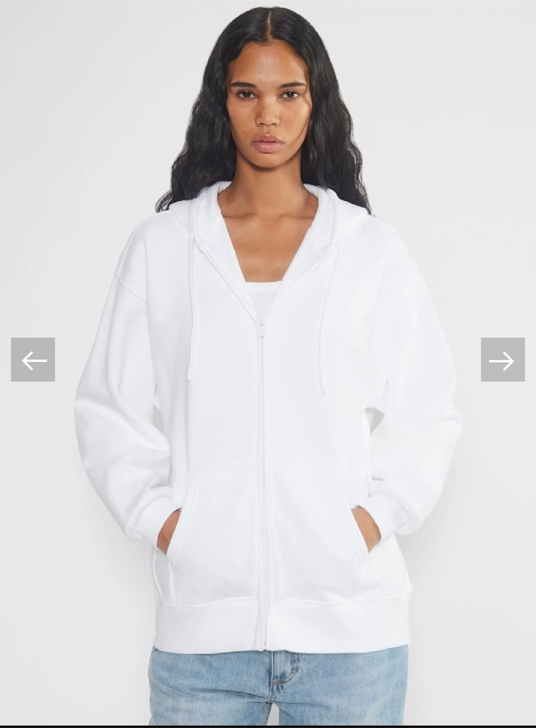 10Brand new Women's white zip-up hoodie. Features a hood, front pockets, and long sleeves. Relaxed fit. Perfect for layering.