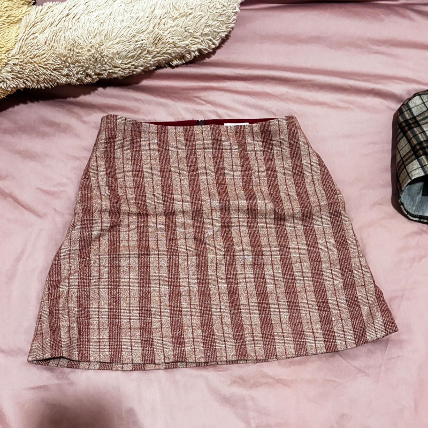 Aritzia Burgendy Brown Plaid Mini Skirt