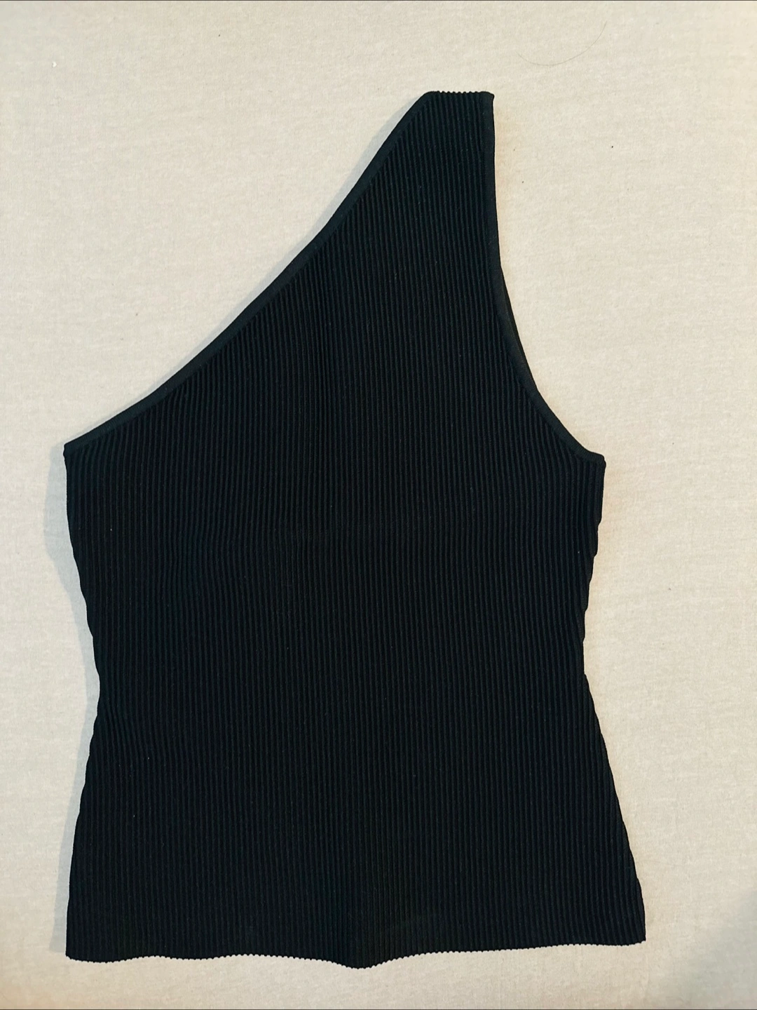Medium Babaton Sculpt Knit Seven Top black one-shoulder top