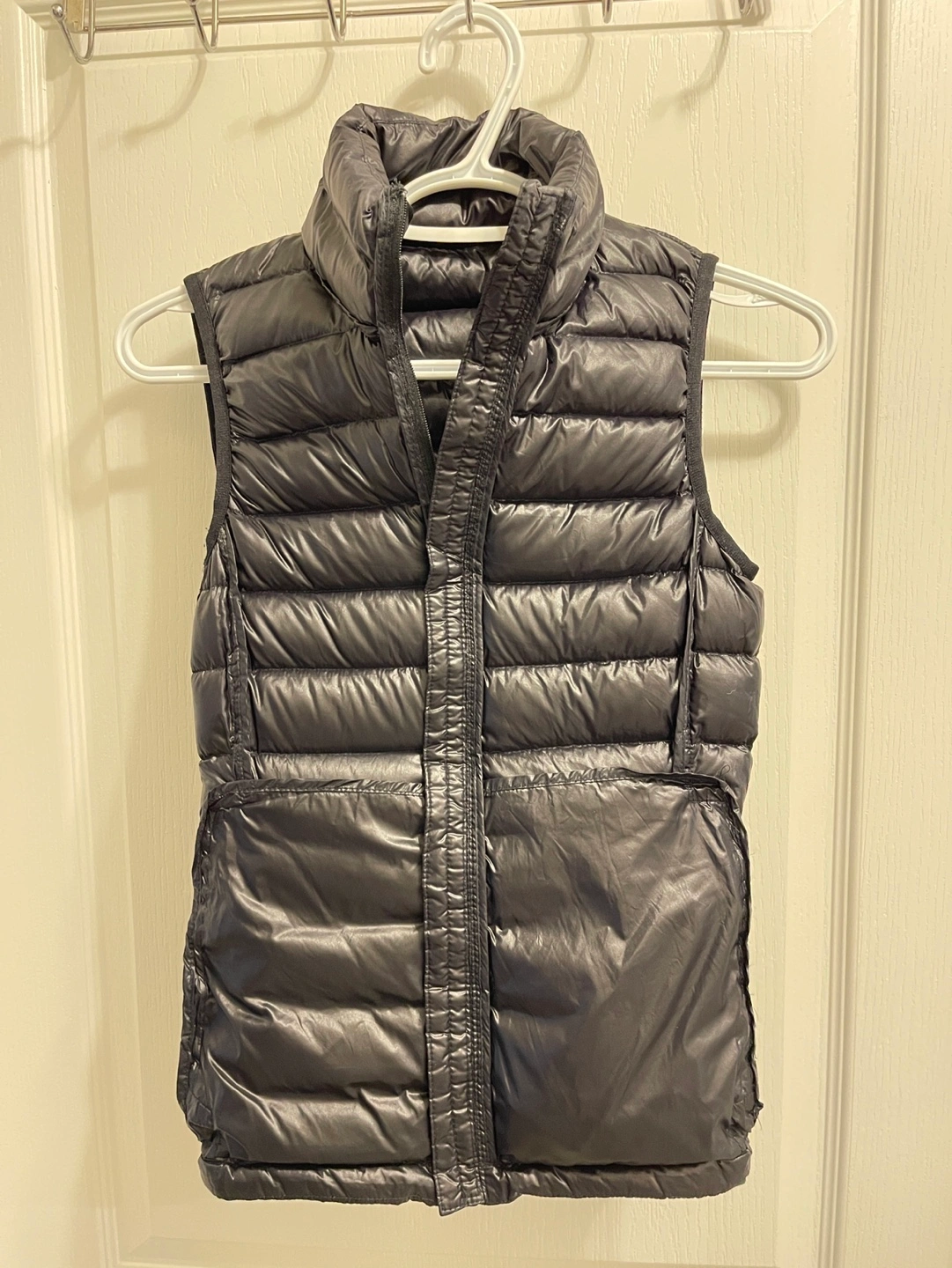 14Lightweight black down vest. Zipper closure. Two pockets. Size extra small. Excellent condition.