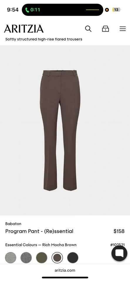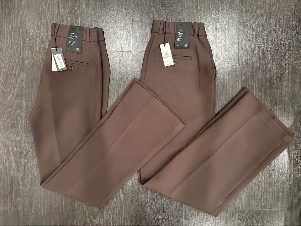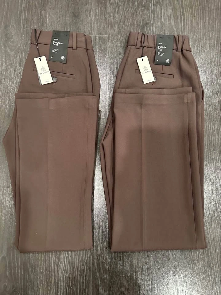 122PRICE IS FIRM. No tryon, no drop off. Brand new with tags Fabric: Ressential Colour: Rich Mocha Brown 1. Program Pants Size 6 regular length 2. Agency Pants Curve Fit size 4 regular length Pick up near St Andrew station or in Oakville. Can also meet in Mississauga or Burlington. Check out my listings for other Aritzia items.