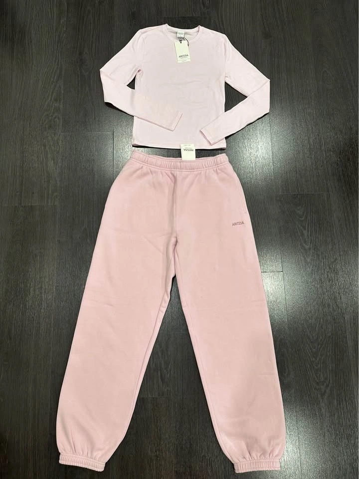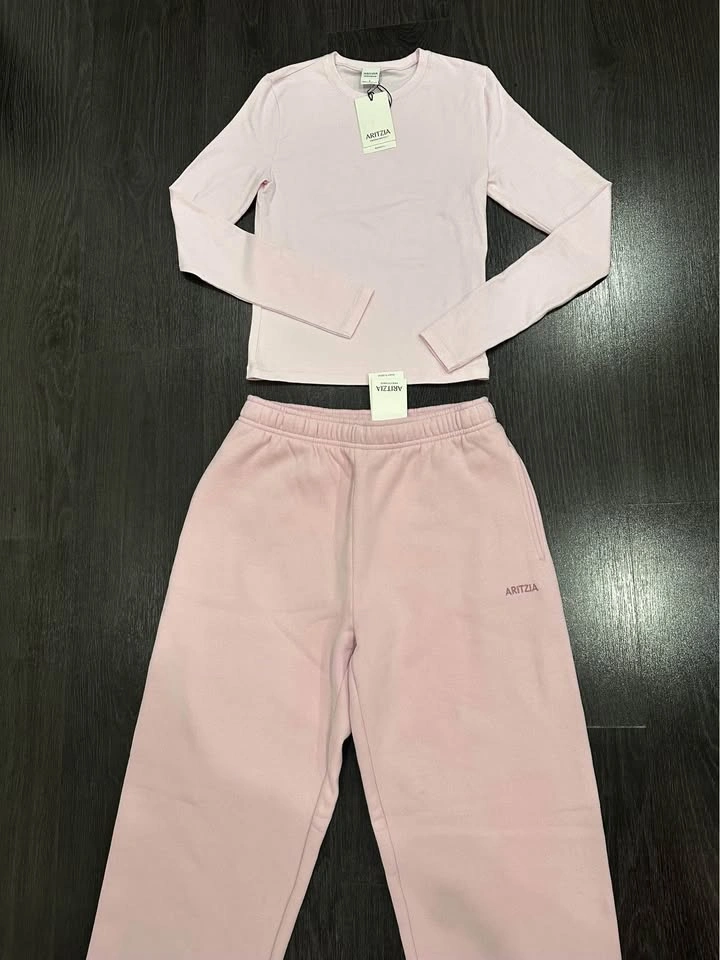 149PRICE IS FIRM. No tryon, no drop off. Brand new with tags Size S 1. Homestretch Smooth Longsleeve in Magnolia (Pink) 2. Cozy Sweatfleece Mega Jogger Regular length in Cupid Pink Pick up 130 King St W or in Oakville. Can also meet in Mississauga or Burlington. Check out my listings for other Aritzia items.