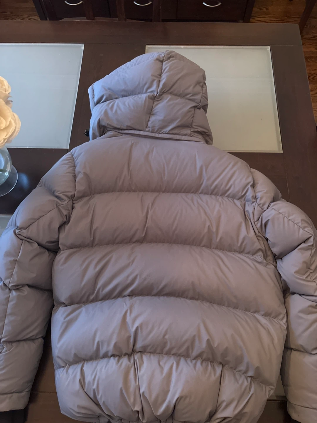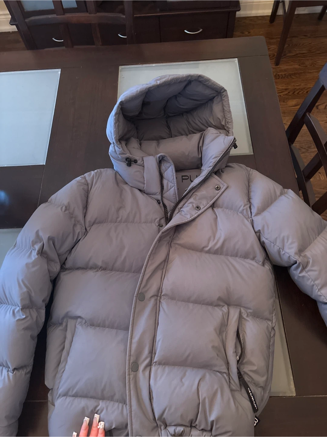 15This Is an Aritzia Super puff, the size is Small, The colour is a nice Thunder blue / Greyish blue, and the quality is 6 months old. (barely warn)
