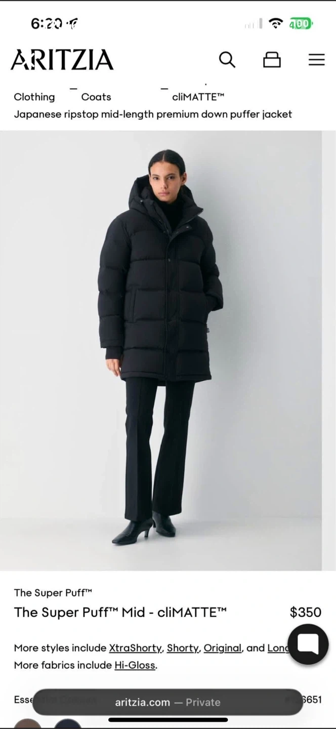 31Selling an Aritzia The Super Puff Mid jacket in black, size XS! It's a Japanese ripstop mid-length premium down puffer jacket. Perfect for staying warm and stylish this winter