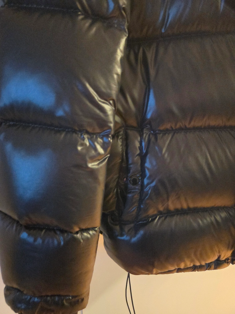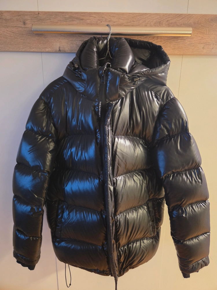 365Selling an Aritzia The Super Puff Original jacket in size small. It's in great condition and ready to keep you warm this winter! The jacket is black and made of a shiny material. It features a hood and a zipper closure.
