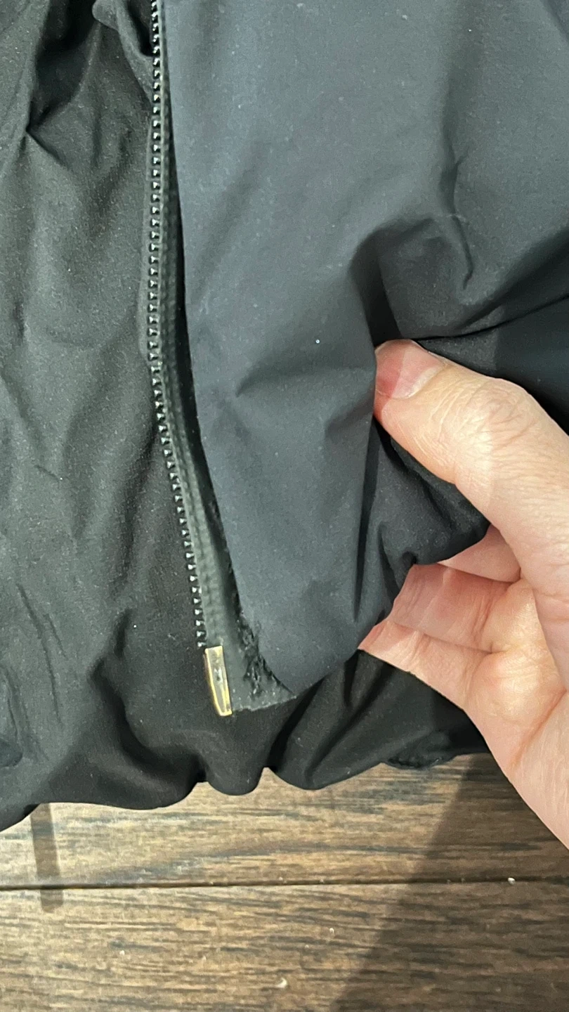 65Selling a Aritzia Super Puff puffer jacket in size large! It's super warm for winters. There's a small tear near the zipper, and the sleeve is worn out. as shown in the pictures but in general still in good condition