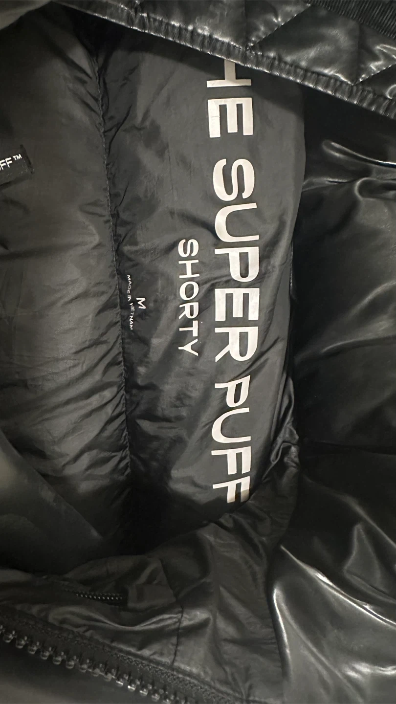 Selling an Aritzia The Super Puff Shorty in shiney black, size medium. The Super Puff is designed to deliver warmth to -30°C / -22°F.