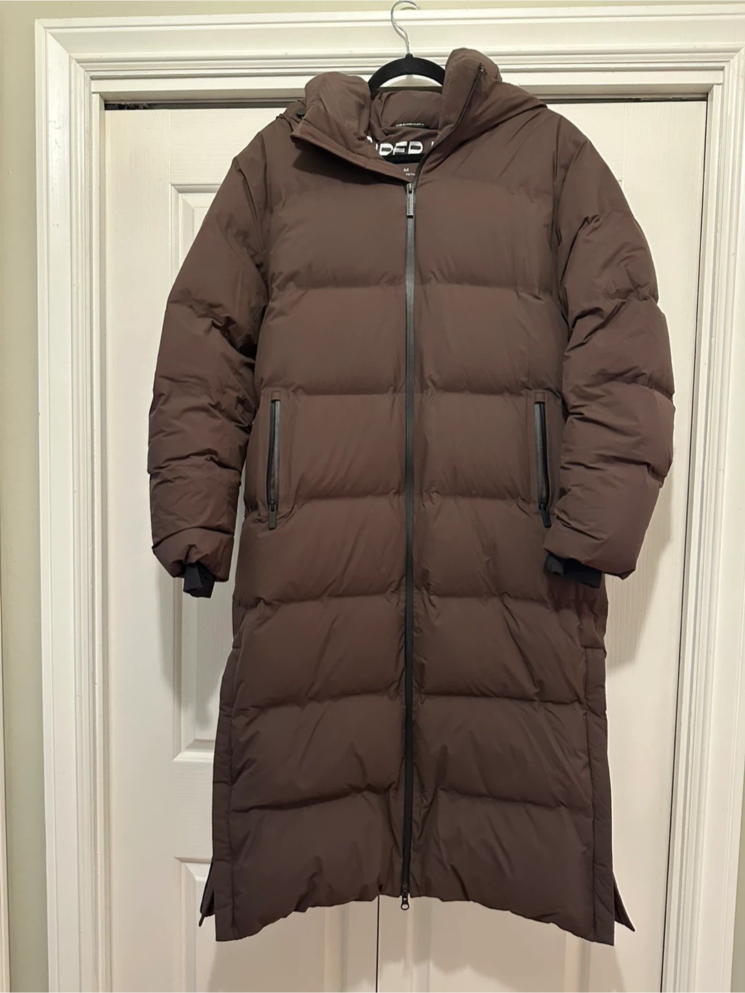 TNA long puffer jacket from Aritzia, it's the Super Puff2O Long Rainstop model! The jacket is Rich Mocha brown and features waterproof and windproof fabric. It's a waterproof garment with sealed seams and bonded channels, and has 700+ fill power, providing superior warmth. Originally bought for $498 + tax asking $400