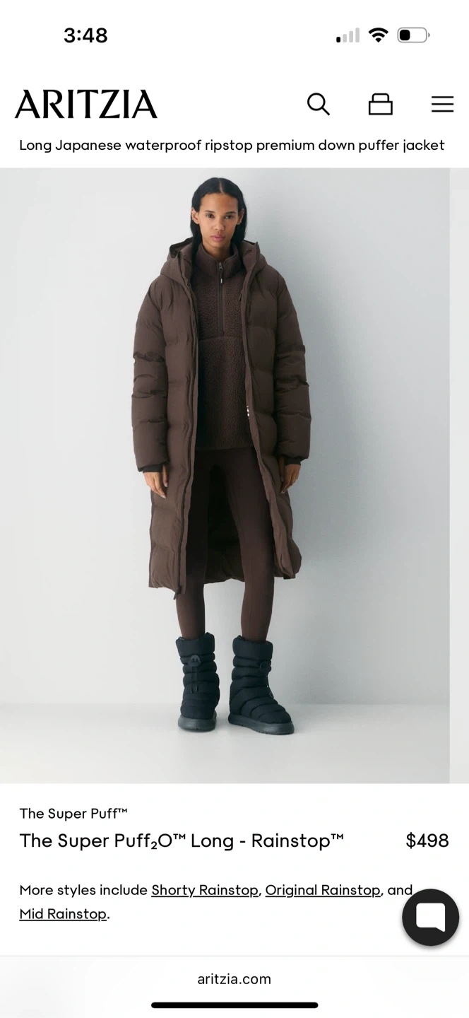Aritzia The Super Puff2O Long Rainstop Puffer Jacket