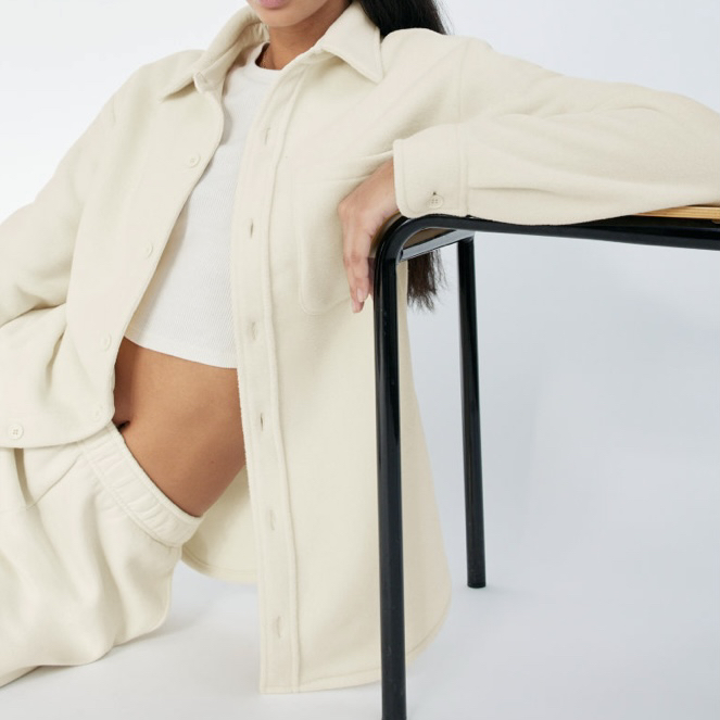Aritzia TNA Polar shirt / shacket. This is a long-sleeve button-up shirt with dropped shoulders and a rounded hem. It’s made with Polartec® 200 — a breathable performance microfleece that gives you lightweight warmth with velour-like texture. Can be worn many seasons! There's no staining or pilling or damage. It;s clean and in excellent condition. Size 2 Approximate measurements laid flat Shoulder 18.5” Pit to pit 22.5” Center back length 29.5” Sleeve inseam 20” Pick up in Leslieville (Queen and Pape)