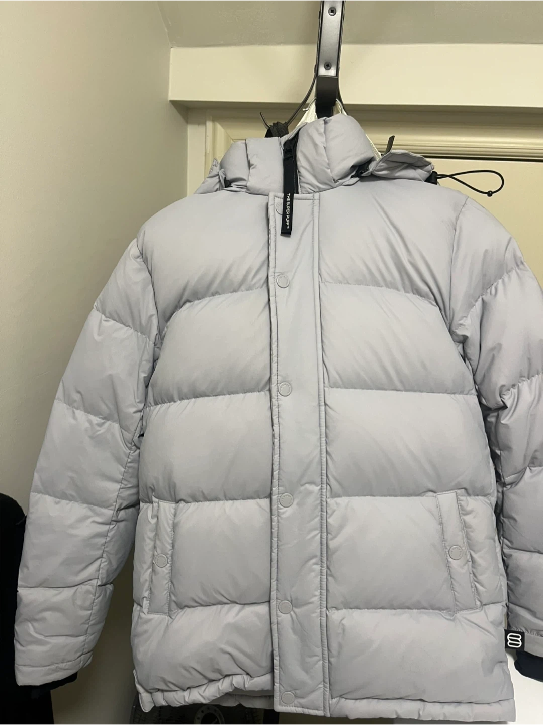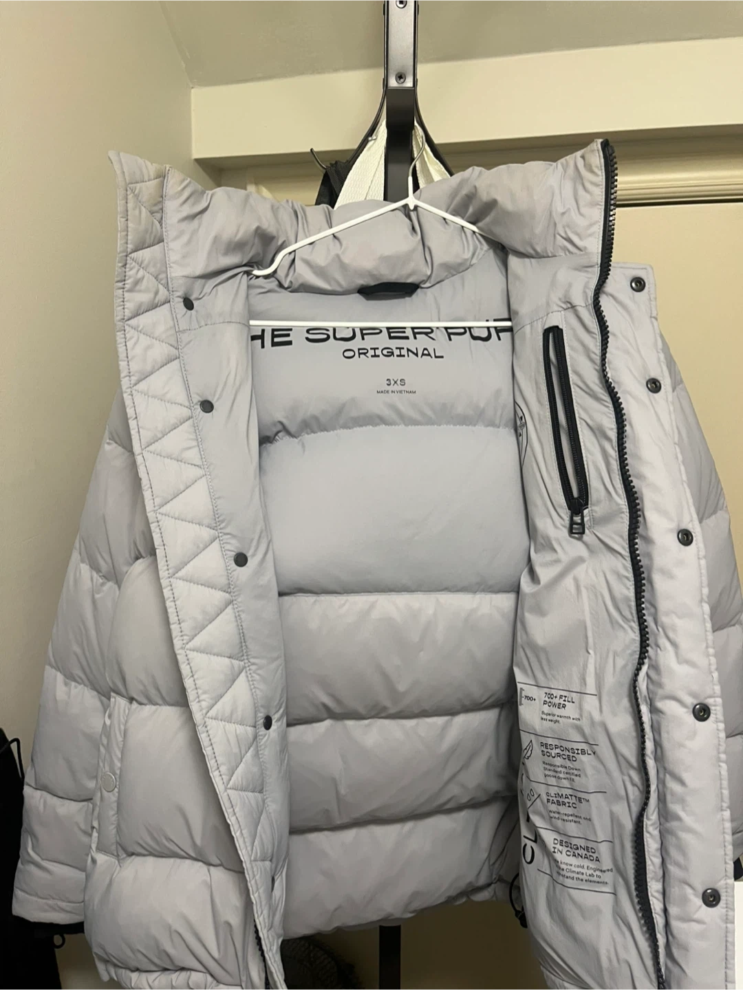Selling my Aritzia Tna The Super Puff™ Original in Marble Grey (size 3XS, style #103424). Bought in December 2022 and around 10 times — still in great overall condition. Trendy greyish blue color. There’s some light yellowing at the sleeve cuffs and neck (see photos). Other than that, the jacket is clean, warm, and cozy. • 700+ fill power responsibly sourced down • Lightweight, warm, and wind-resistant • From smoke-free, pet-free home 📍 Pick up near Markville Mall (Markham, ON) 💵 Pay at pick up (cash only)