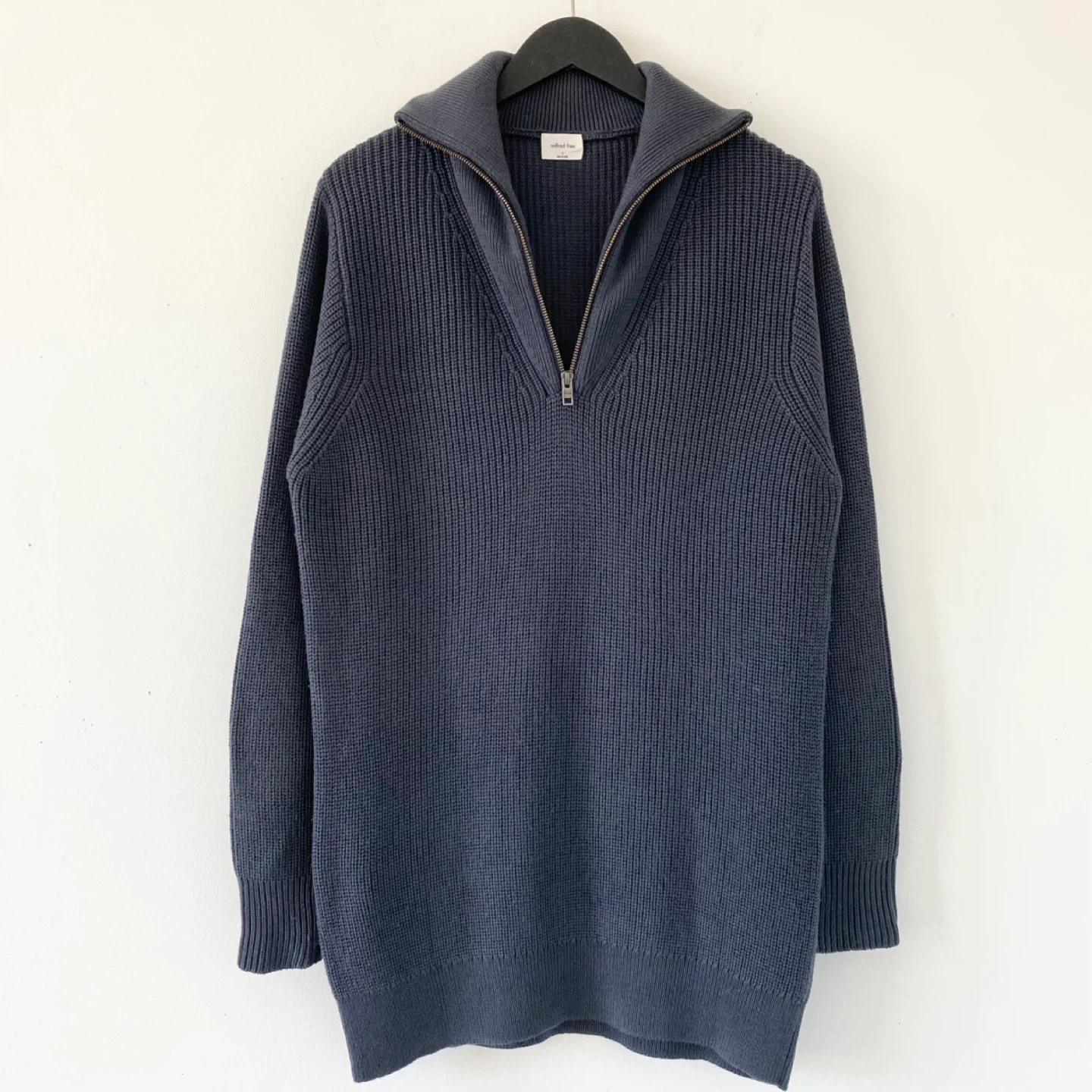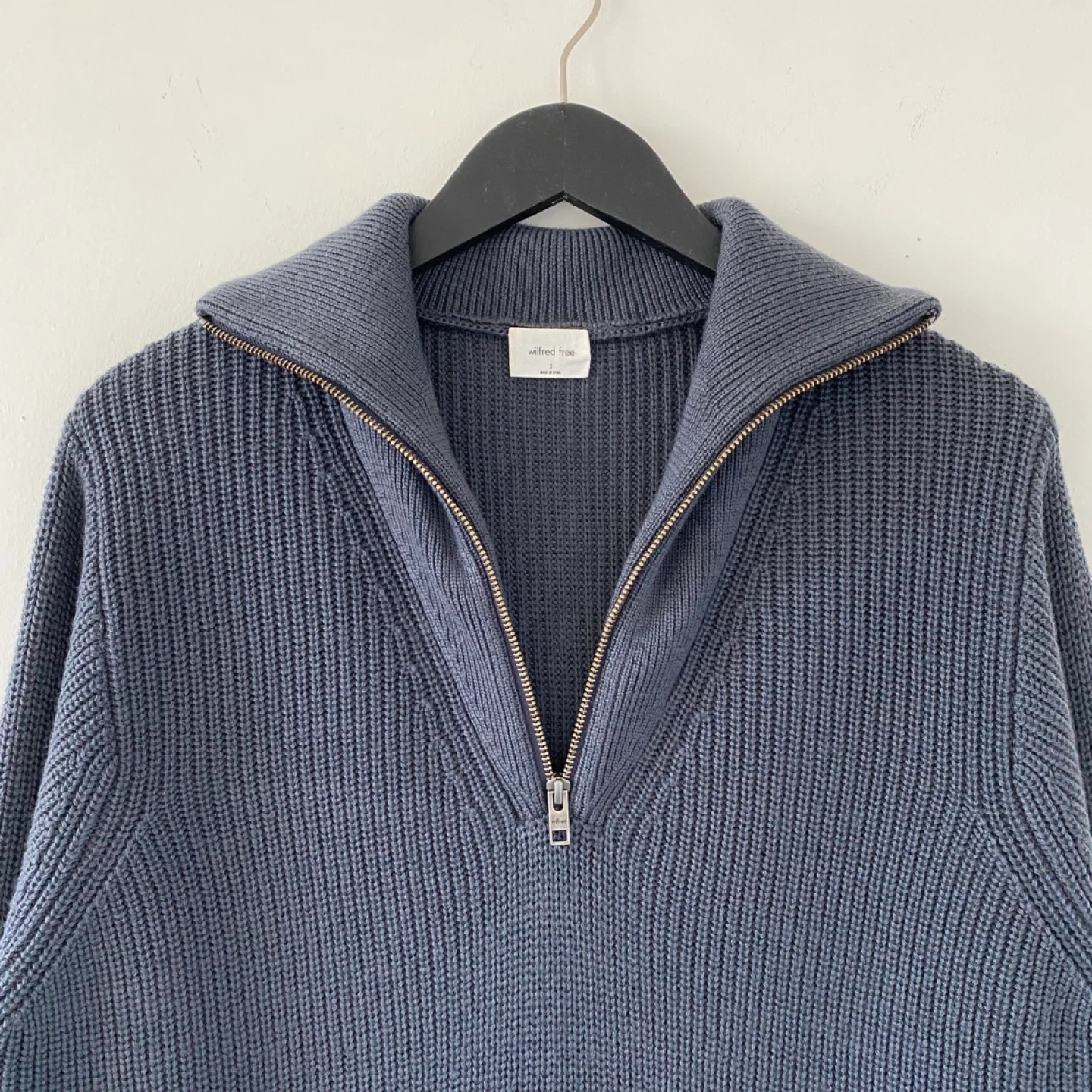 Pick up only in Leslieville (Queen and Pape) Check out other listings! Aritzia Wilfred Free Caton long sweater. Features an 1/4 zip and an oversized fit. Made of medium weight 100% wool in a grey-ish navy colour. There's some general wear and minimal pilling. Otherwise there's no staining or holes, It's clean and in great condition Size S Approximate measurements laid flat Shoulder 17” Pit to pit 22” Shoulder to cuff 26” Center back length 31.25”