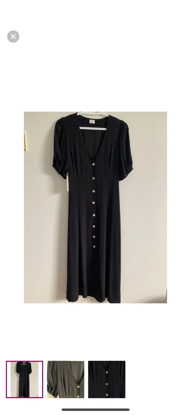 Aritzia Wilfred Libretto black dress in brand new condition, with tags. It features a button-up front, waist tie, and short sleeves. Perfect for any occasion. Like most aritzia, this fits a bit smaller.