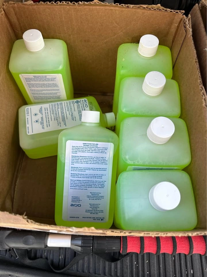 10Hospital grade concentrated disinfectant. Very powerful and has a nice smell as well. Unopened and has the seal on. One bottle lasts about 4 months depending on usage. 12 bottles in total. $8 per bottle or $90 for all 12